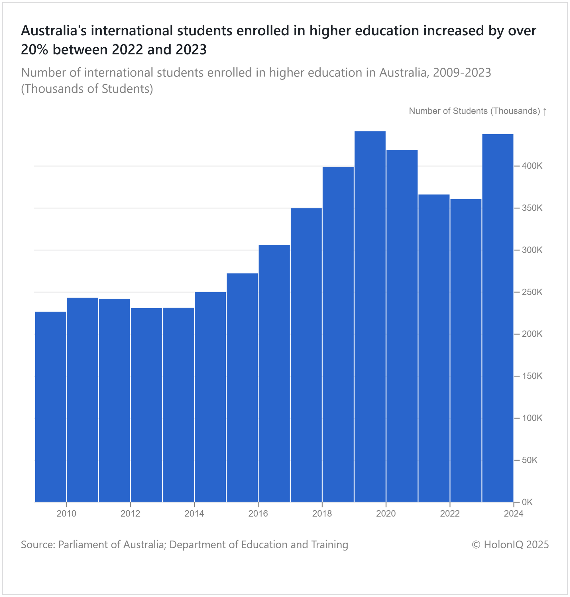 ๐ Higher Education. 20% rise in international students in Australia