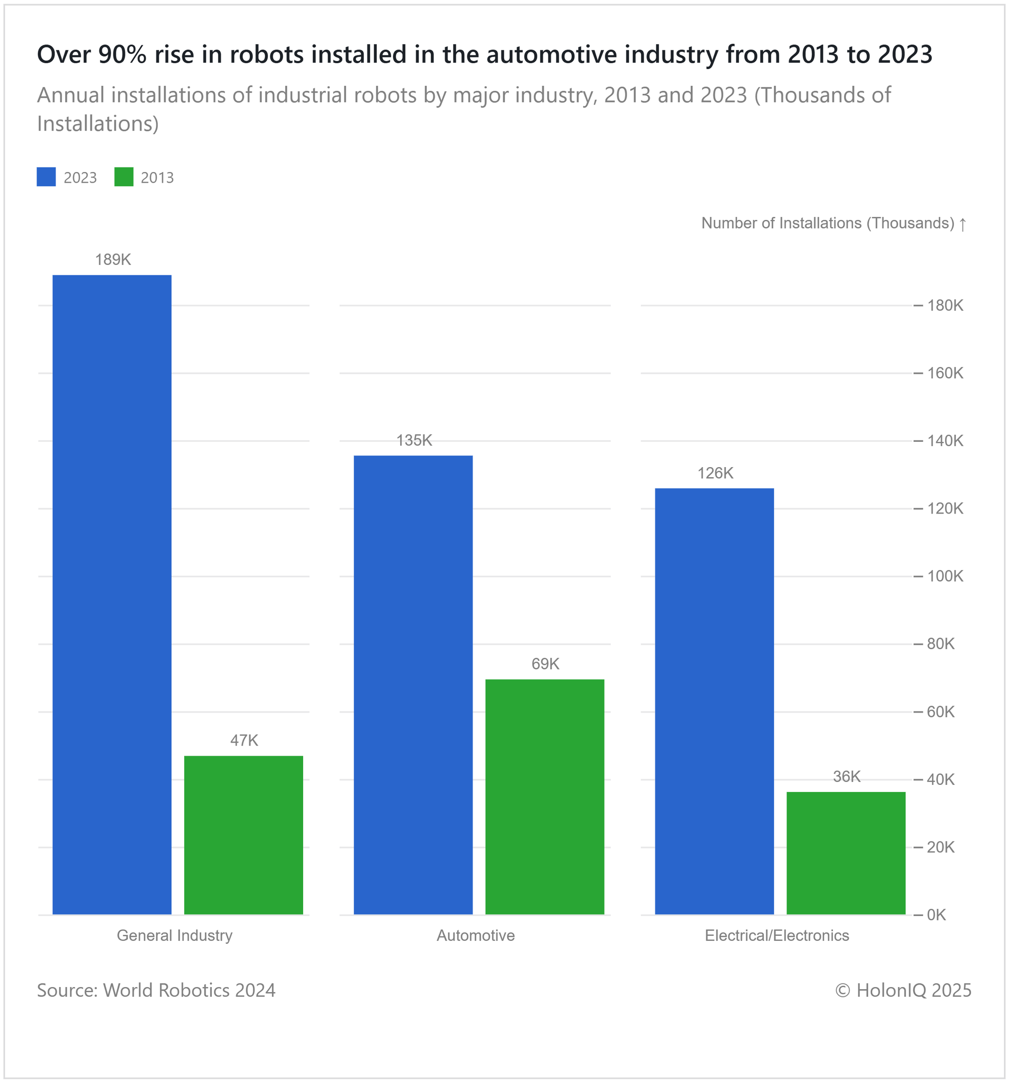 🏭 Automotive Industry Robots Nearly Doubled Between 2013 to 2023
