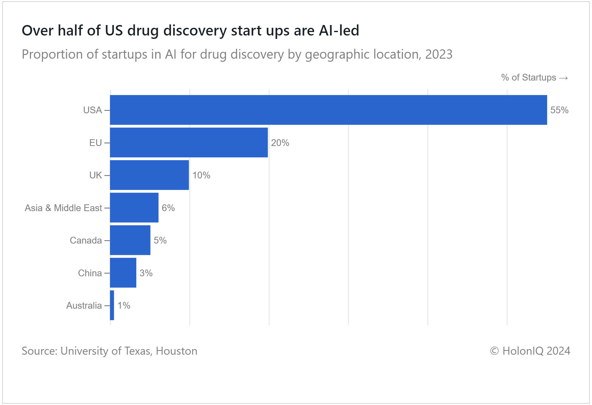 💊 Drug Discovery. The US leads in AI-led drug discovery startups
