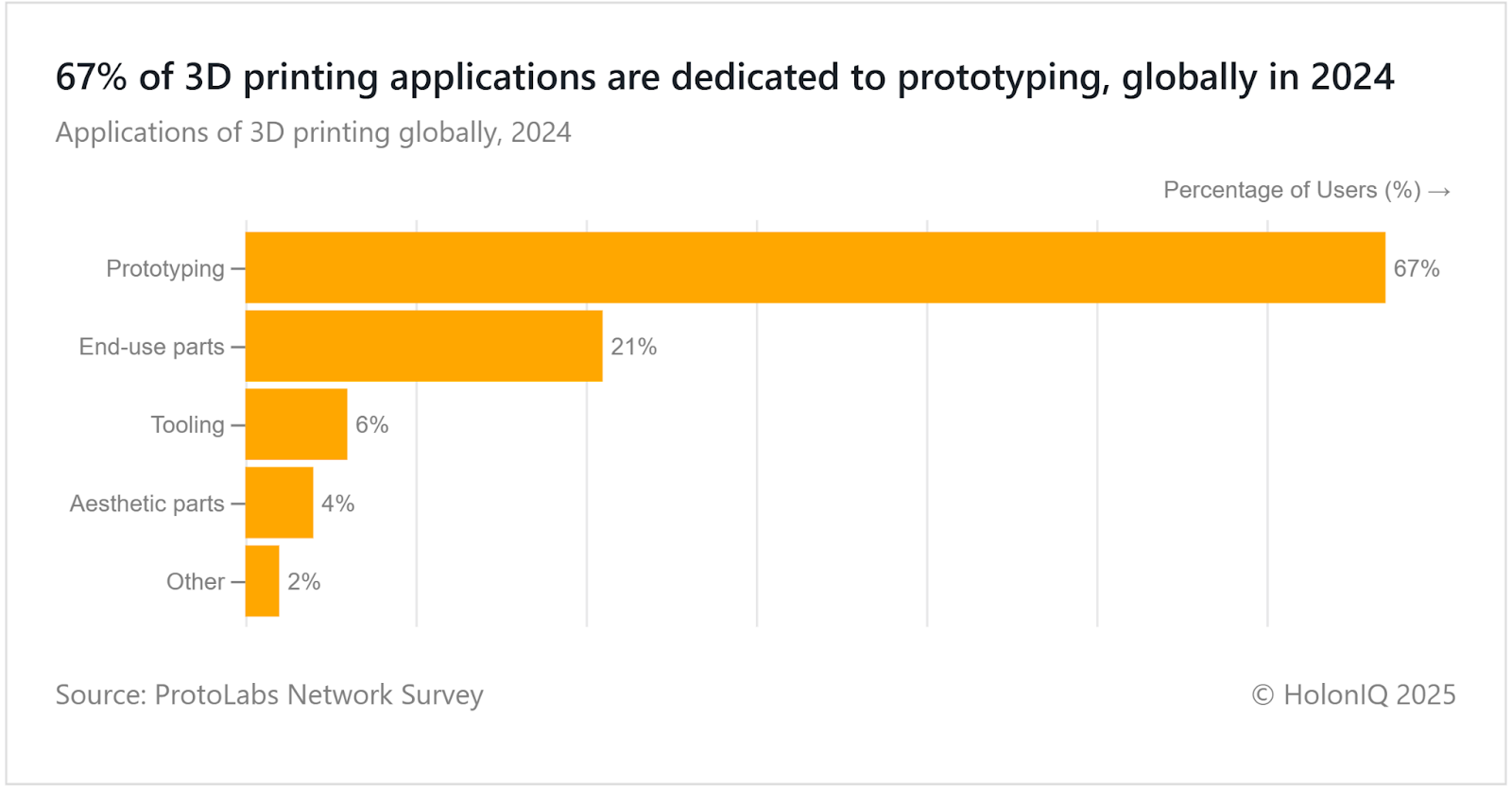Prototyping dominates 3D printing applications at 67%, confirming its primary role in iterative design over End-use parts (21%). This trend is why companies like Ford are utilizing it for component development. The accelerated design cycle directly feeds into the growing concerns about intellectual property management being addressed by the World Intellectual Property Organization (WIPO). Consequently, this focus on quick manufacturing loops solidifies why additive manufacturing is a key pillar of the European Commission's Industry 4.0 strategy.