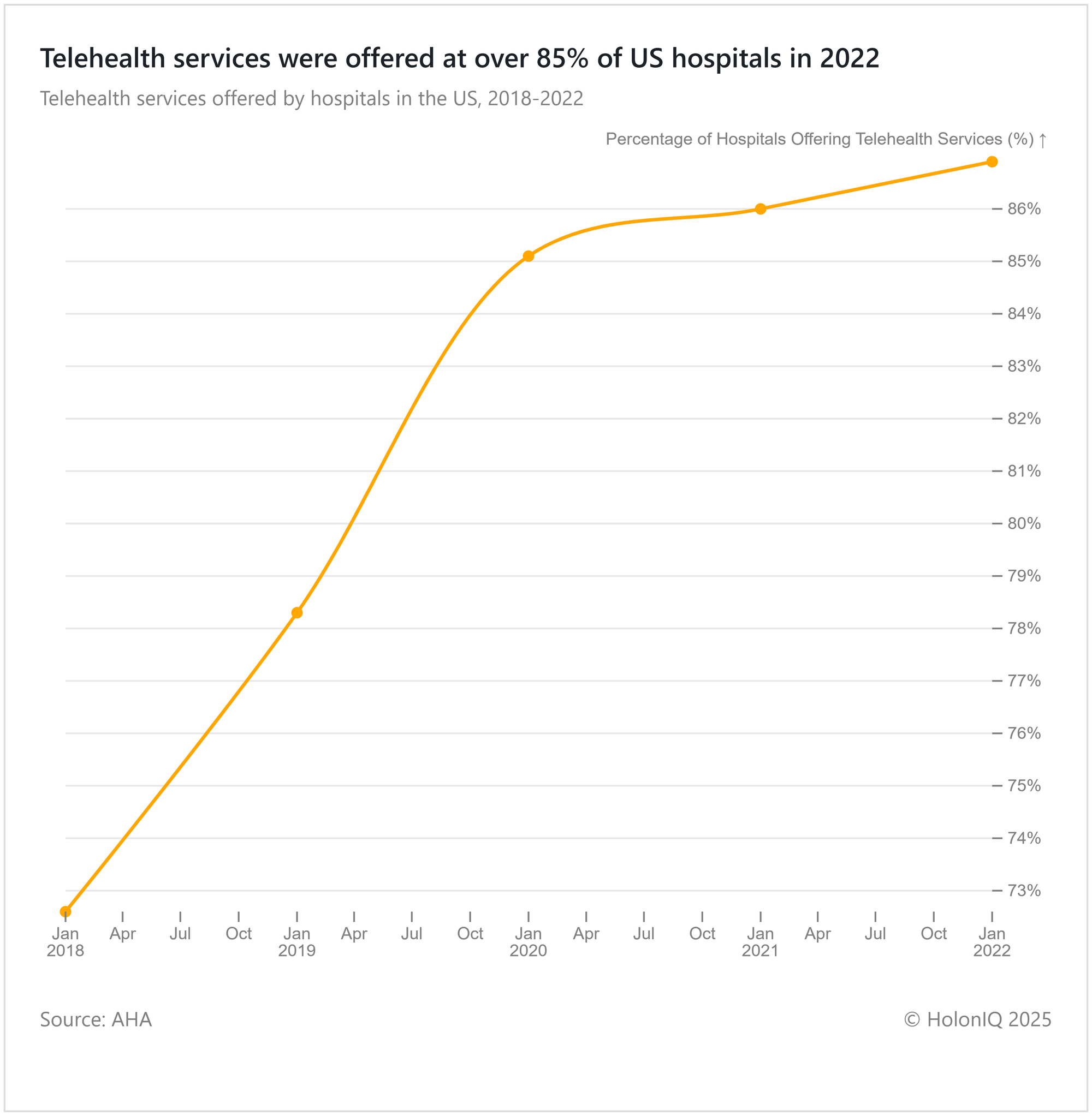 Telehealth availability in US hospitals jumped from roughly 70% in 2018 to over 85% by 2022, reflecting its essential role in post-Covid care delivery. Usage surged as patients sought safer, more convenient access, especially for mental health and chronic-care check-ins. Despite this growth, proposed federal funding cuts and reimbursement uncertainties now threaten service expansion, raising concerns about equity, rural access, and long-term sustainability.