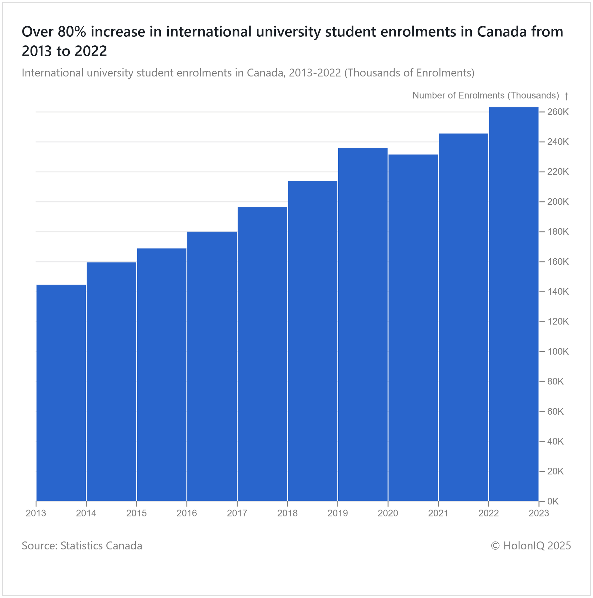🎓 Higher Education. >80% increase in Canada's student enrolments
