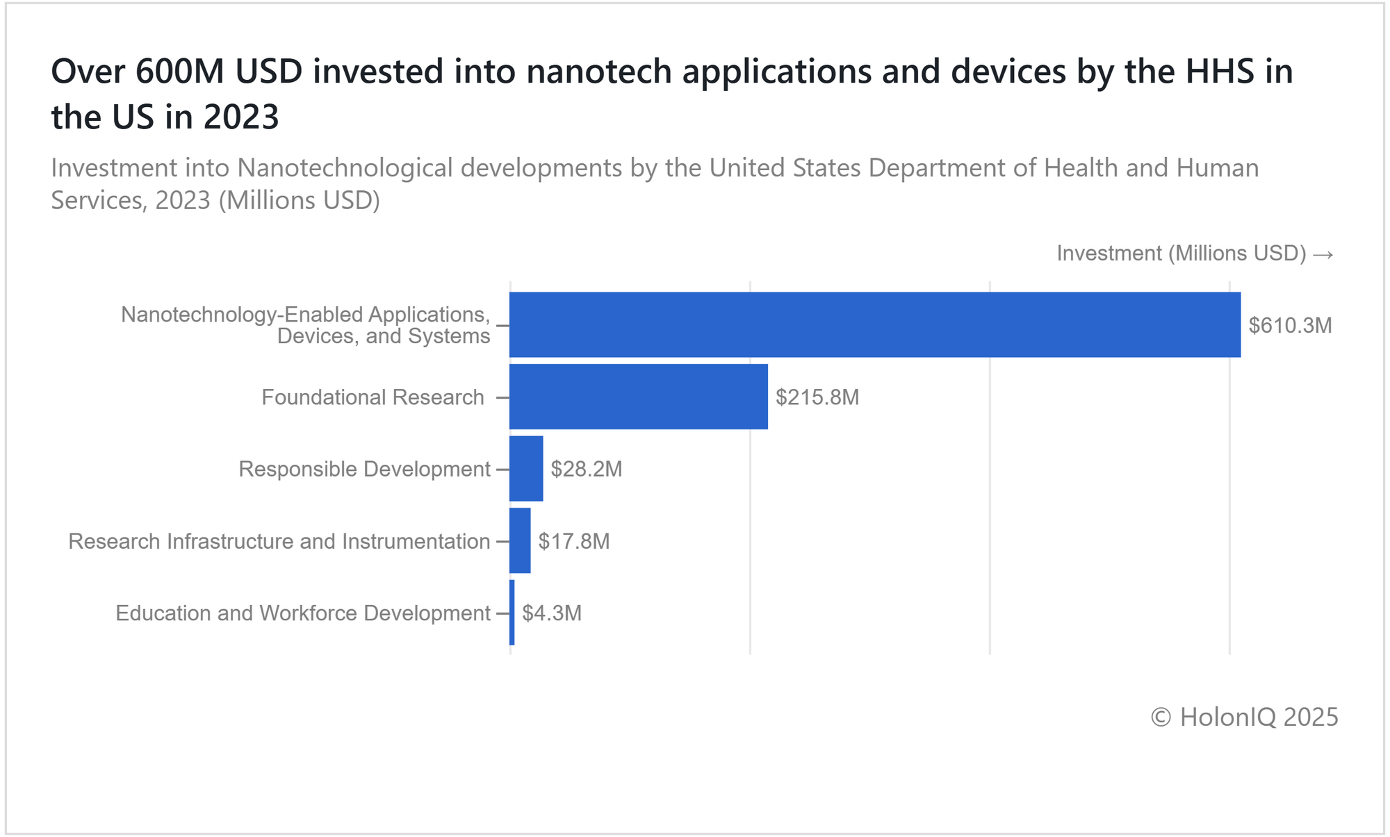 The US Department of Health and Human Services (HHS) heavily invests in nanotechnology, allocating $610.3M primarily to applications, devices, and systems. This signals a strong commitment to practical healthcare advancements, such as targeted drug delivery and the development of gene therapy techniques. Nanotechnology is actively enhancing gene therapy's precision and safety, offering new avenues for treating complex diseases. Sustained R&D funding by HHS for these nanomedical innovations remains vital for future medical efficiency, particularly amid broader healthcare budget adjustments