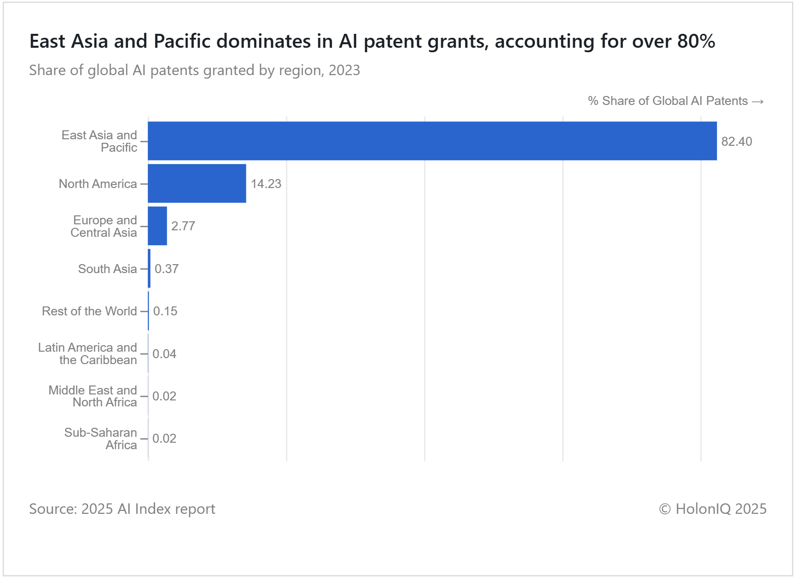 East Asia and the Pacific Account for >80% of Global AI Patent Grants