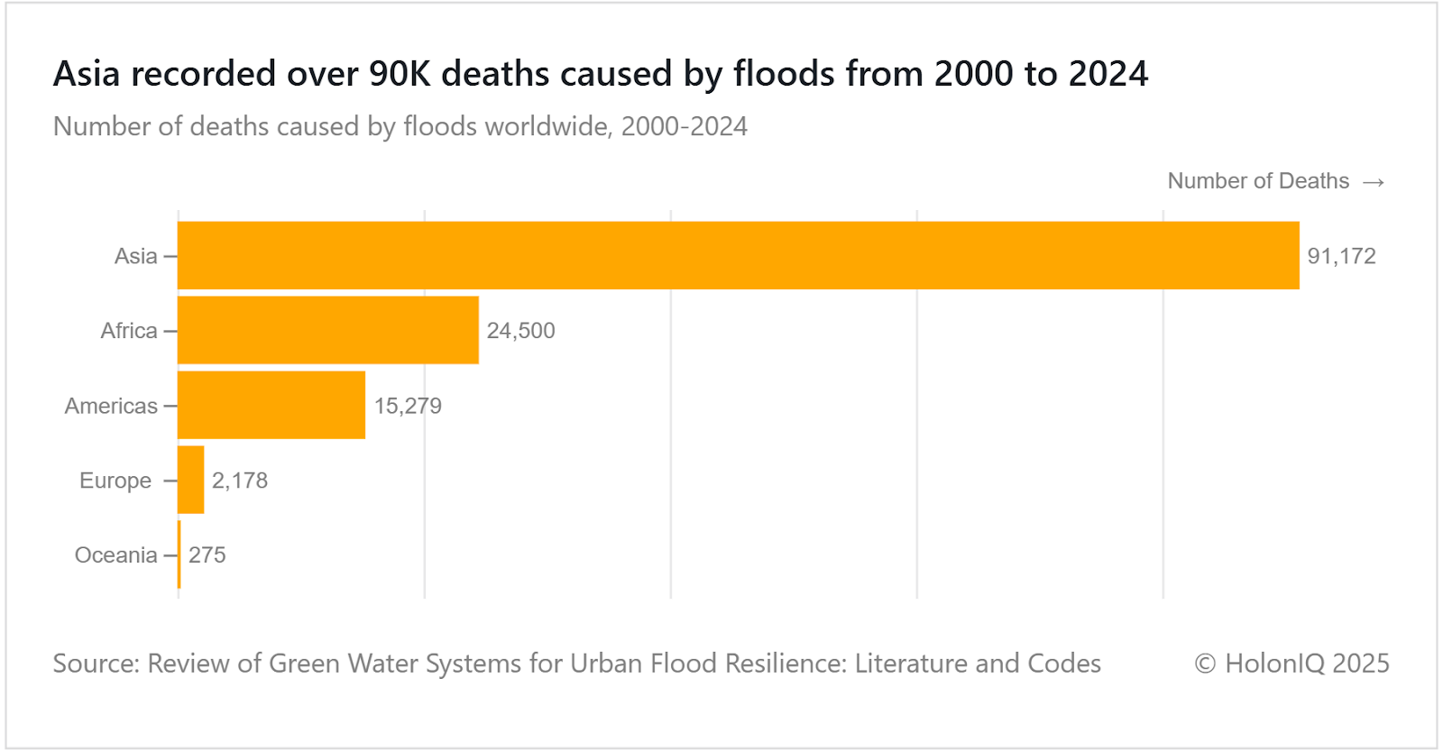 Asia recorded over 90K deaths caused by floods from 2000 to 2024, representing nearly 60% of global flood fatalities and significantly exceeding Africa's 24,500 deaths. The concentration of casualties in Asia reflects the region's dense population in flood-prone areas and increasing extreme weather events. Recent catastrophic flooding in South East Asia and SriLanka due to Cyclone Ditwah, which claimed hundreds of lives in December 2025, has accelerated Asian discussions on climate adaptation infrastructure. Death tolls raise concerns about the fitness of flood management frameworks. Initiatives such as the ADB’s Integrated Flood Risk Management have been proposed for appropriate precautions to prevent further damage from floods.