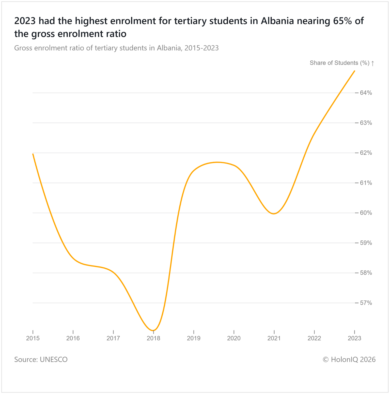 💼 Albania’s tertiary student enrolment peaked in 2023