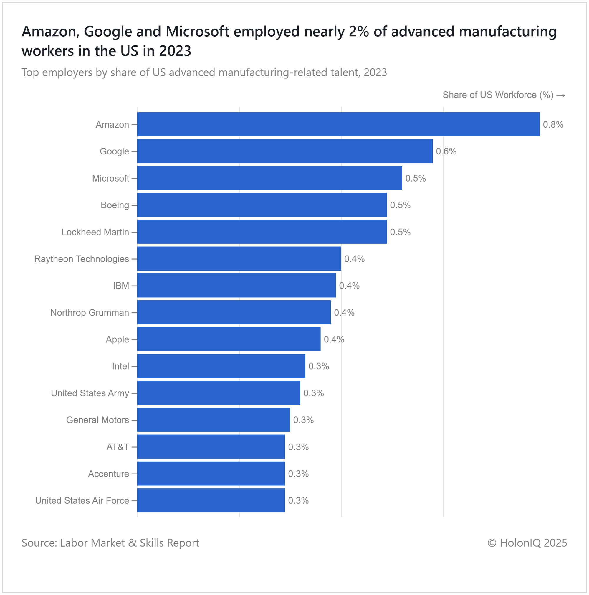 🏭 Advanced Manufacturing. Amazon, Google, and Microsoft lead advanced manufacturing hiring