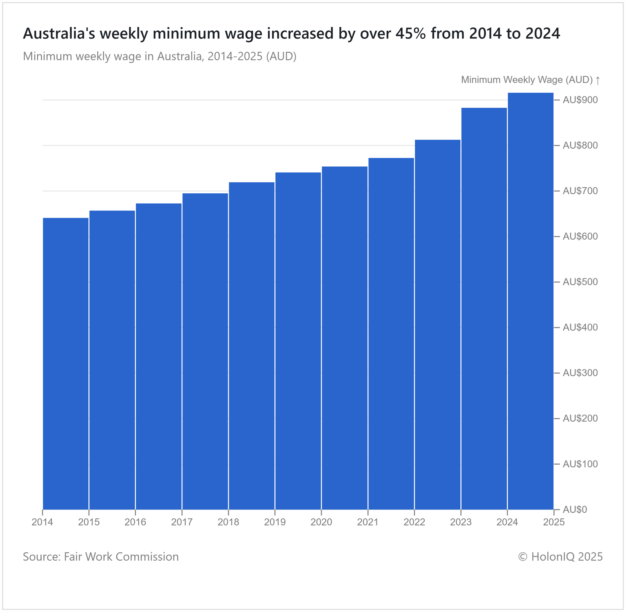 💼 Workforce. >45% increase in Australia’s minimum weekly wage