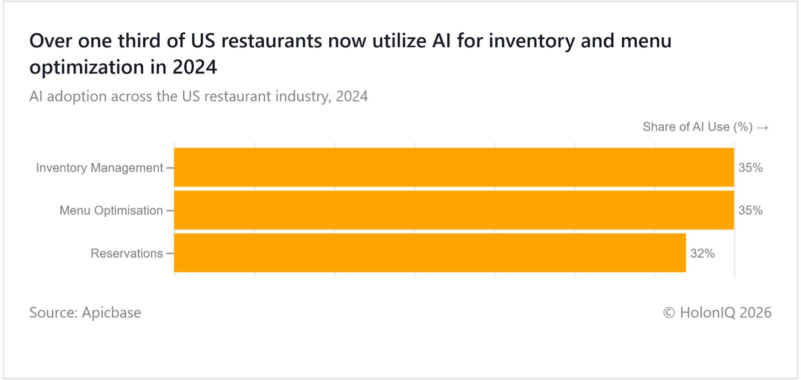 Over one-third of US restaurants now use AI for inventory management and menu optimisation in 2024, reflecting the technology’s growing role in streamlining operations. AI helps restaurants predict demand, reduce waste, and tailor menus to customer preferences, improving efficiency and profitability. Policies promoting digital transformation and workforce training in hospitality can further accelerate AI integration and operational innovation.