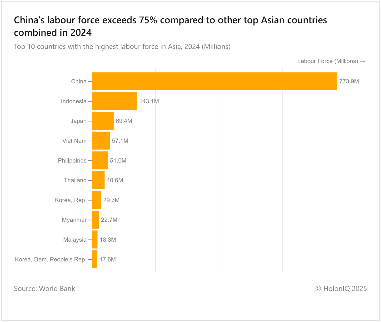 China leads Asia’s labour force with nearly 800M workers. The data highlights Asia’s concentration of working age populations in emerging economies and export led growth. This trend parallels workforce shifts into green industries and technology roles across the region, as seen in rising student demand for digital and engineering programs. The World Bank’s Human Capital Project continues guiding countries on strengthening workforce productivity and skills development.