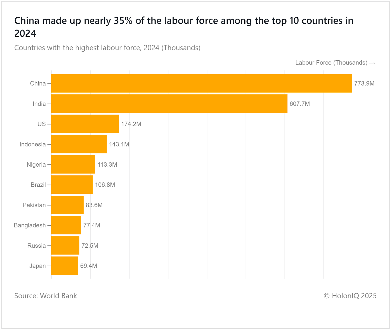 💼 China Accounts for Nearly 35% of the Workforce Among the Top Countries