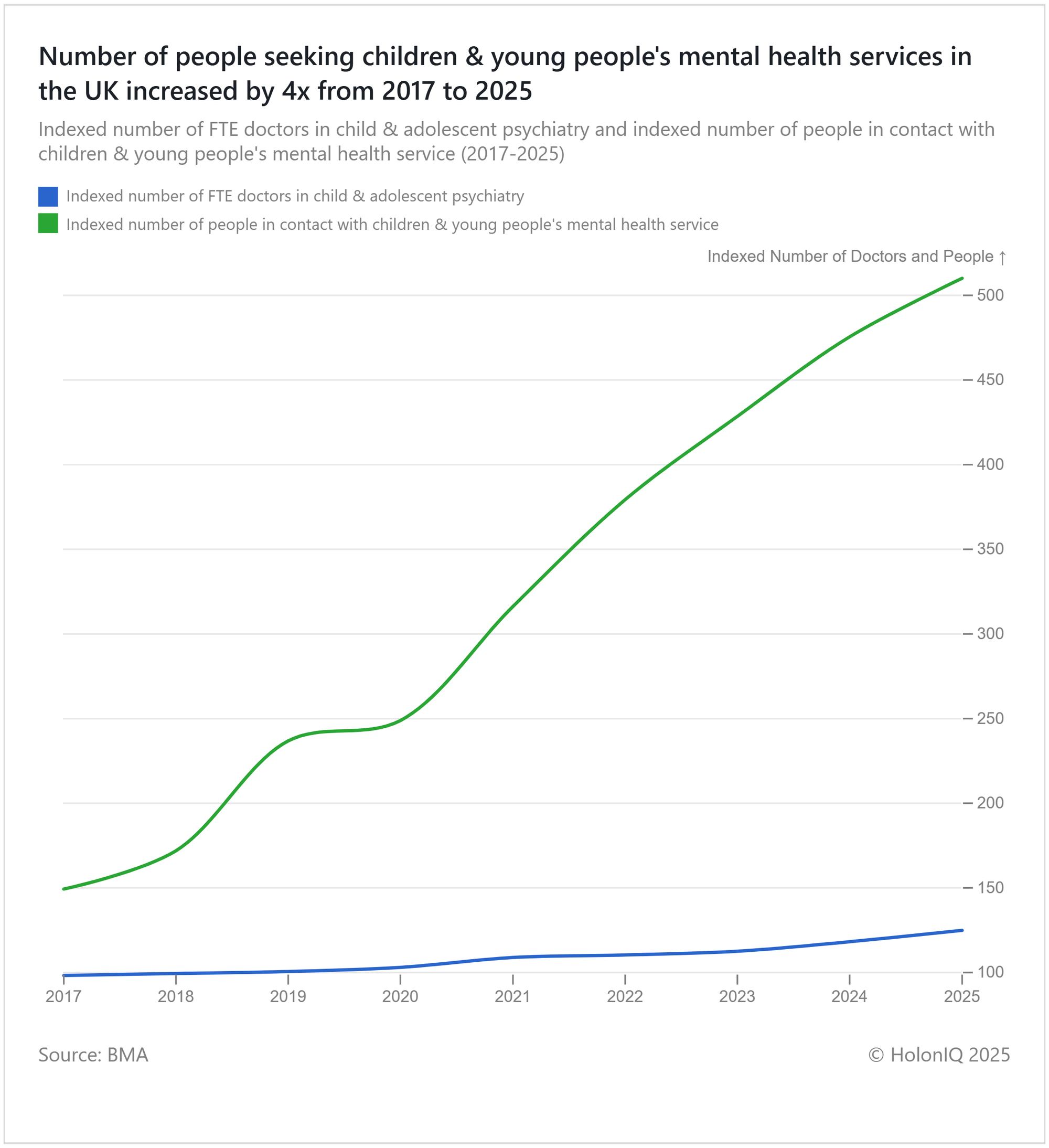 ⚕️ Healthcare. UK children seeking mental health services rose 4x