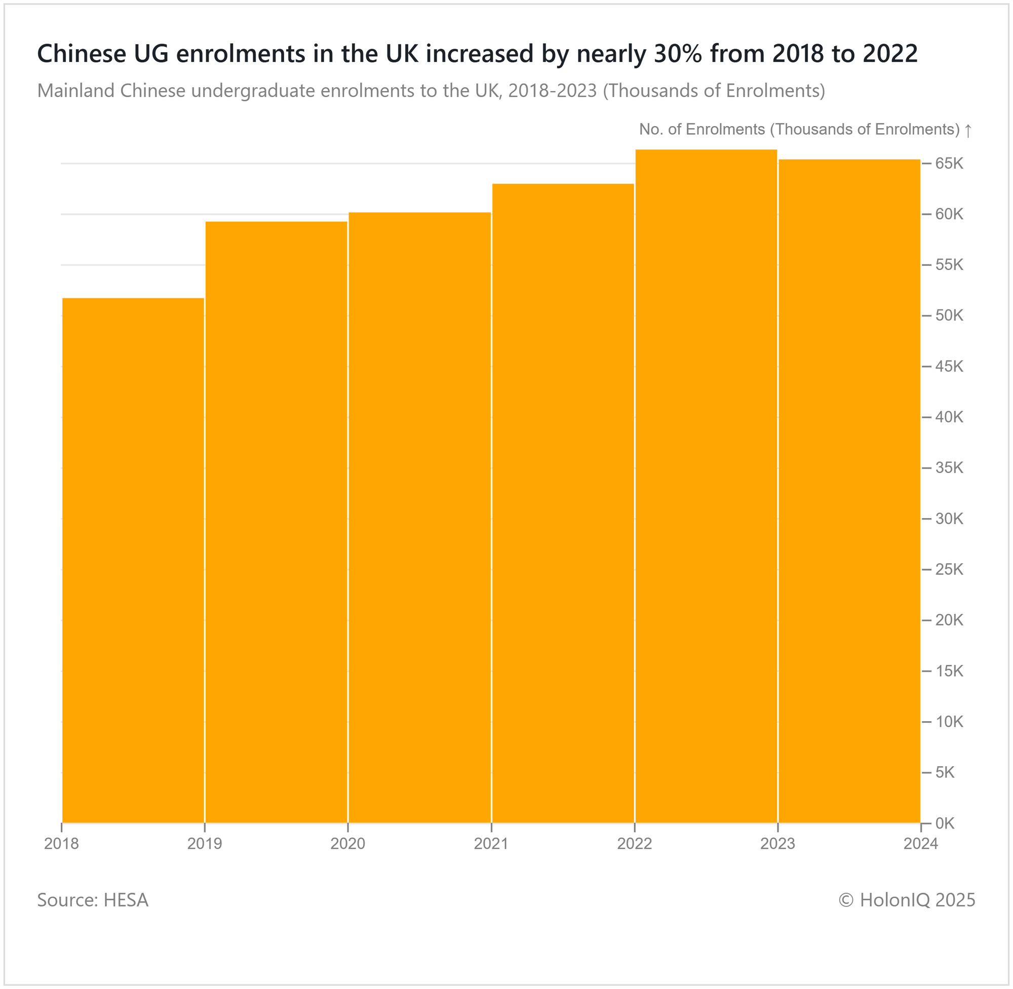 ✈️ Flows. Chinese UG enrolments in the UK increased by nearly 30%