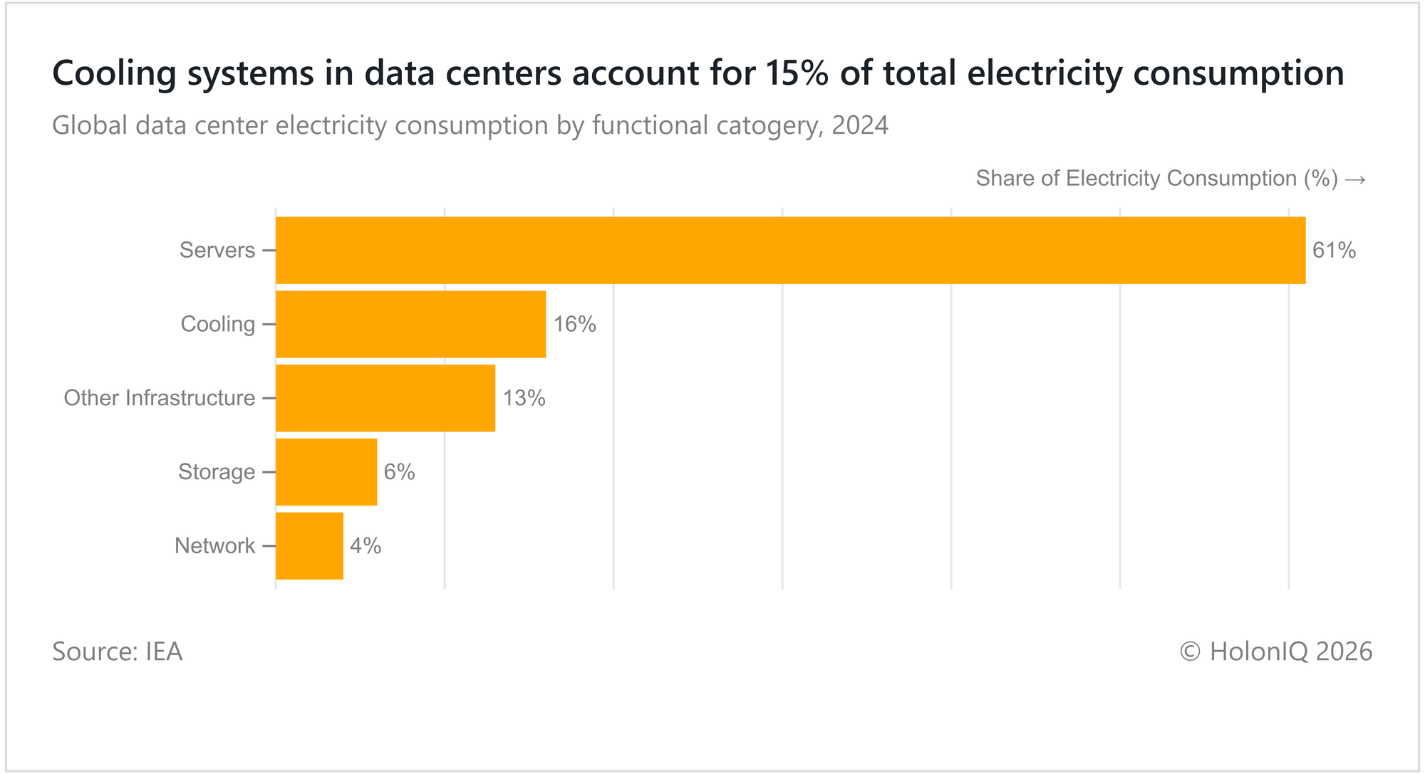 Cooling systems in data centres consume a relatively large share of electricity because servers generate immense heat while processing data continuously. Today, data centres are estimated to consume roughly 415 terawatt hours of electricity, accounting for about 1.5% of global usage. This demand has increased at an average annual rate of 12% over the past five years. Advanced cooling technologies such as liquid cooling or air conditioning are energy-intensive, especially in large-scale facilities handling cloud computing, AI workloads, or high performance computing. As data traffic and server density grow, electricity demand for cooling rises alongside server power use.