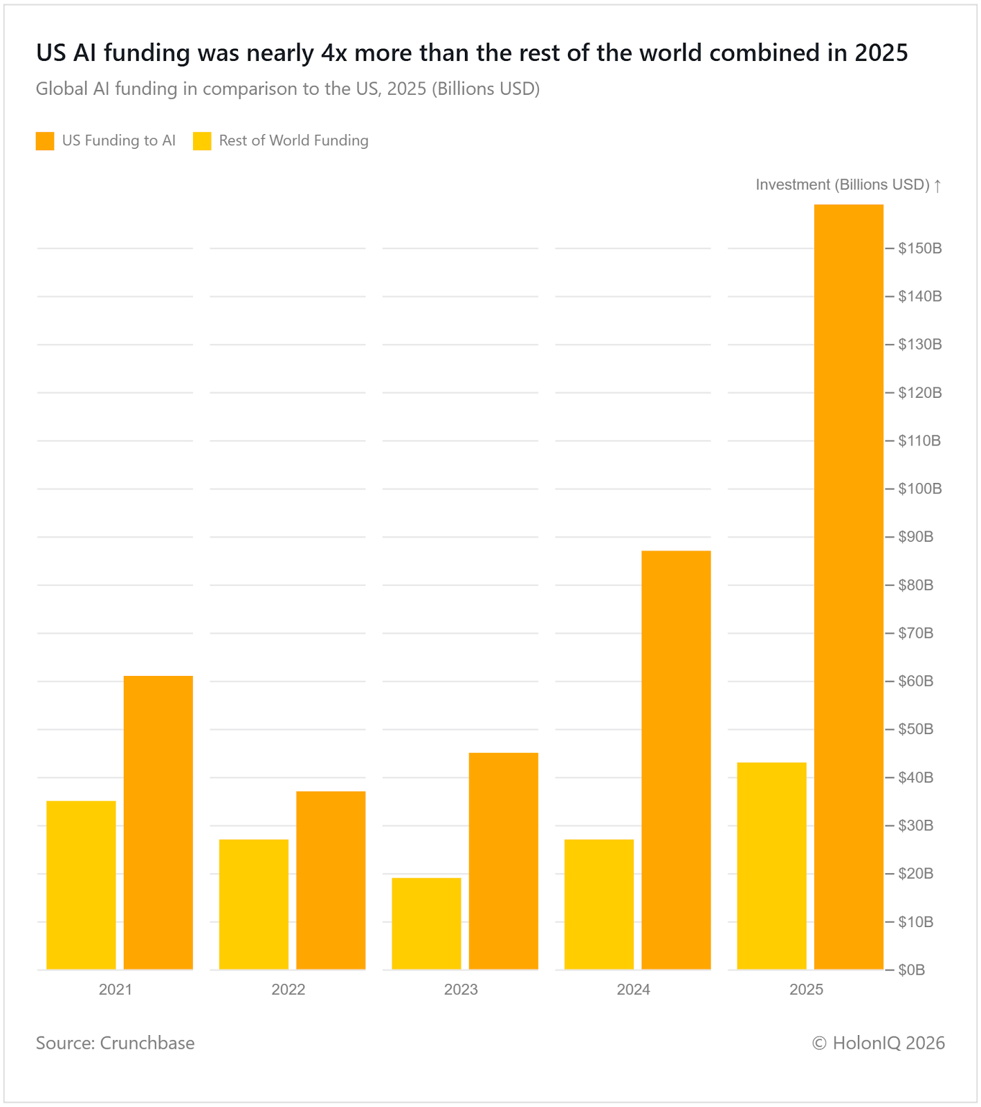 ๐ค Artificial Intelligence. US AI funding is nearly 4x more than the rest of the world