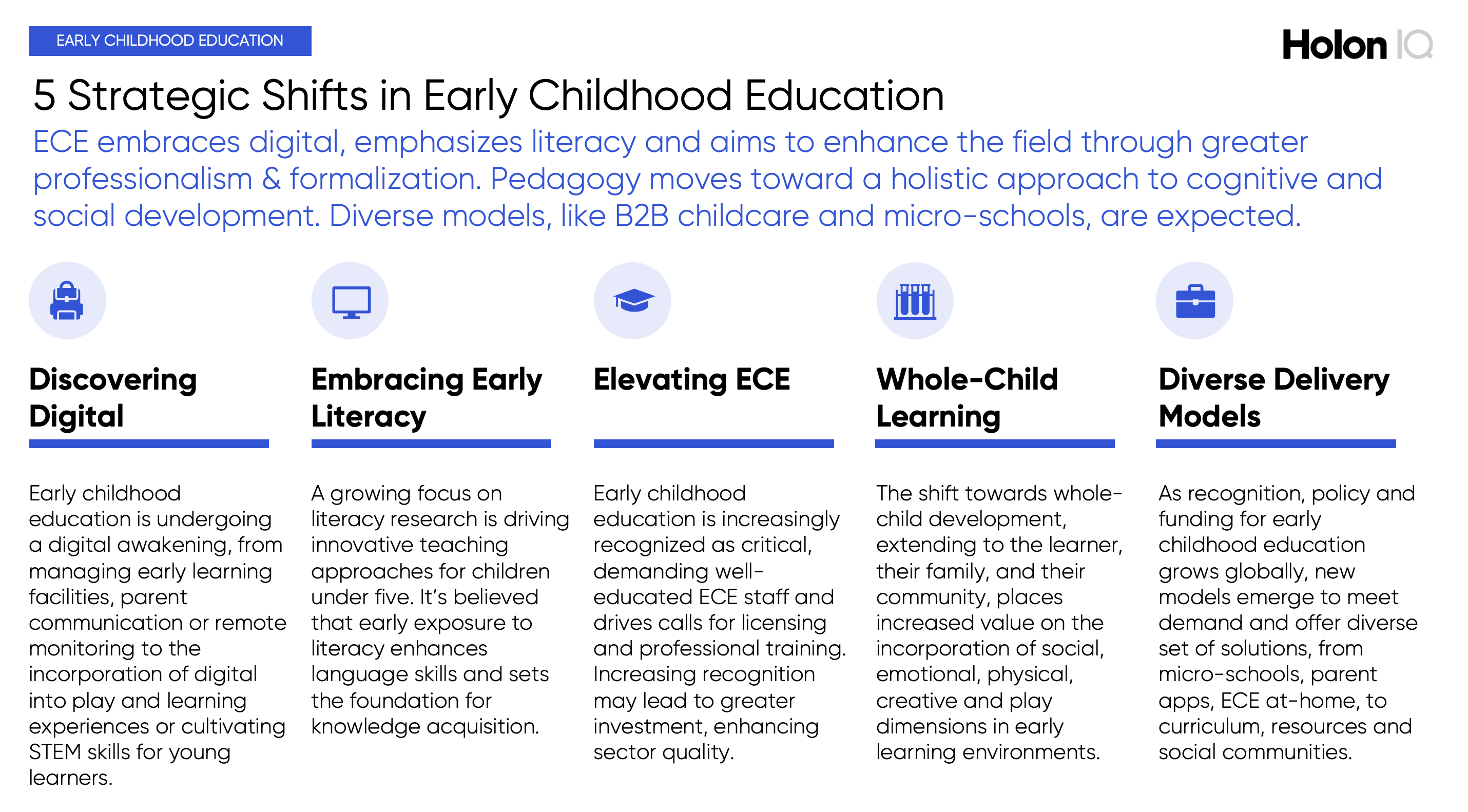 Governments are investing in early childhood education, while EdTech companies innovate with new tools, driving demand for skilled educators and formalizing the sector. 5 Strategic Shifts in Early Childhood Education.