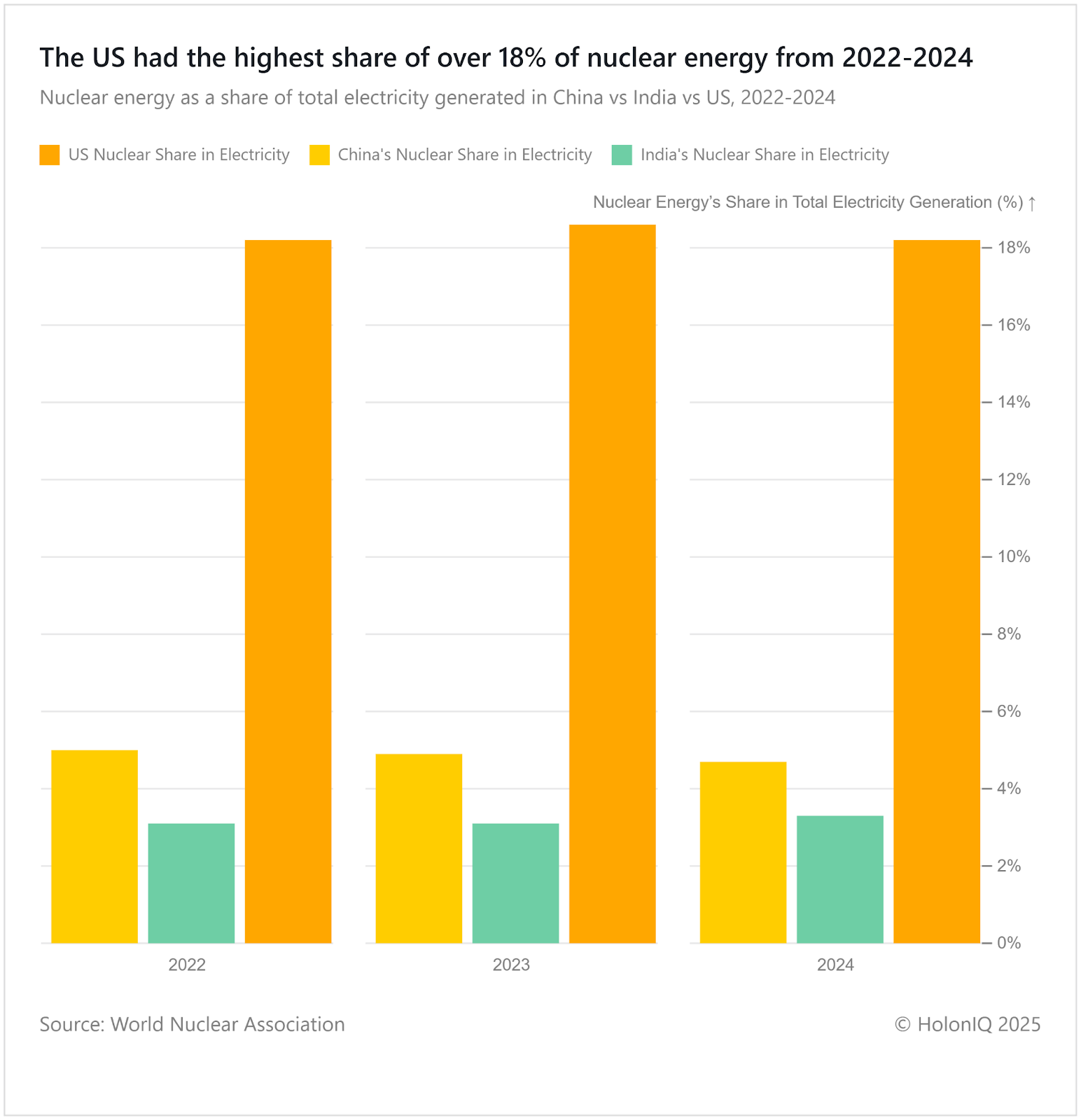 🍃 The US Had the Highest Share of Nuclear Energy Over China and India