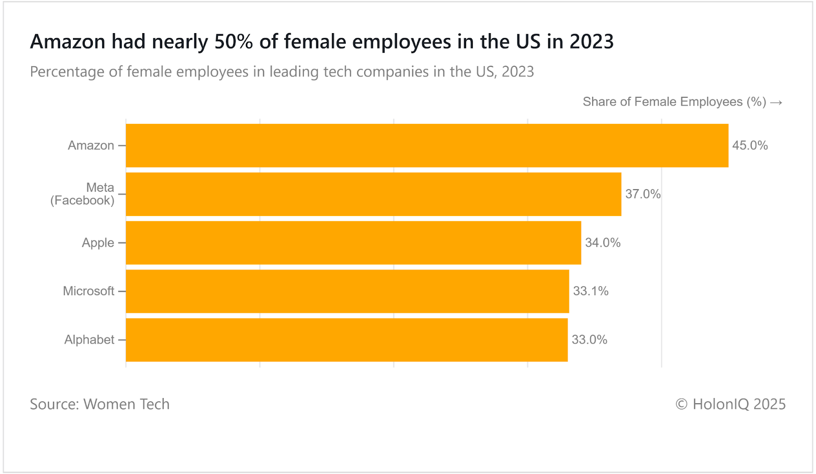 💼 Workforce. Amazon had the highest share of female employees