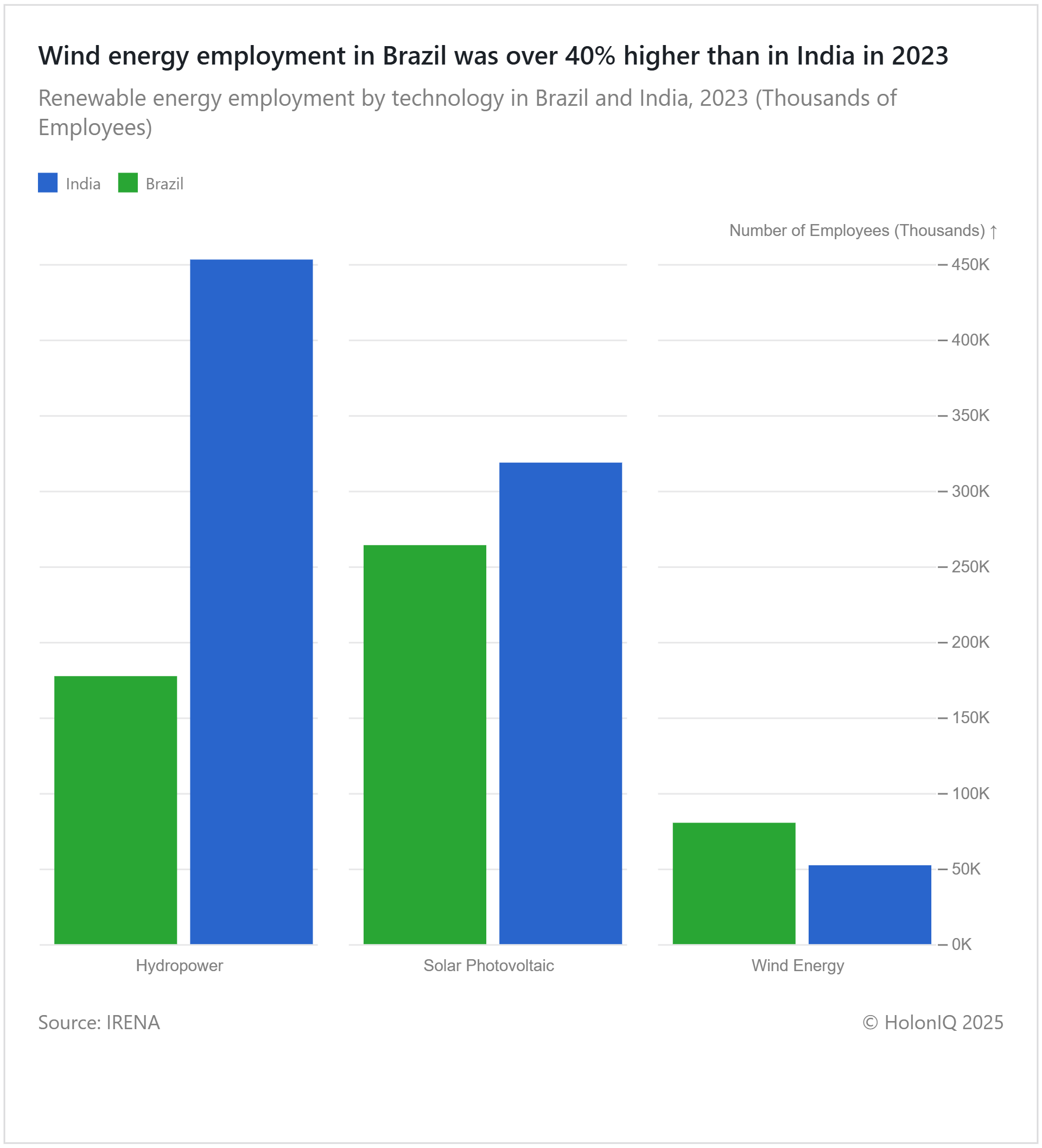 🍃 Green Skills. Brazil had >40% more wind energy jobs than India