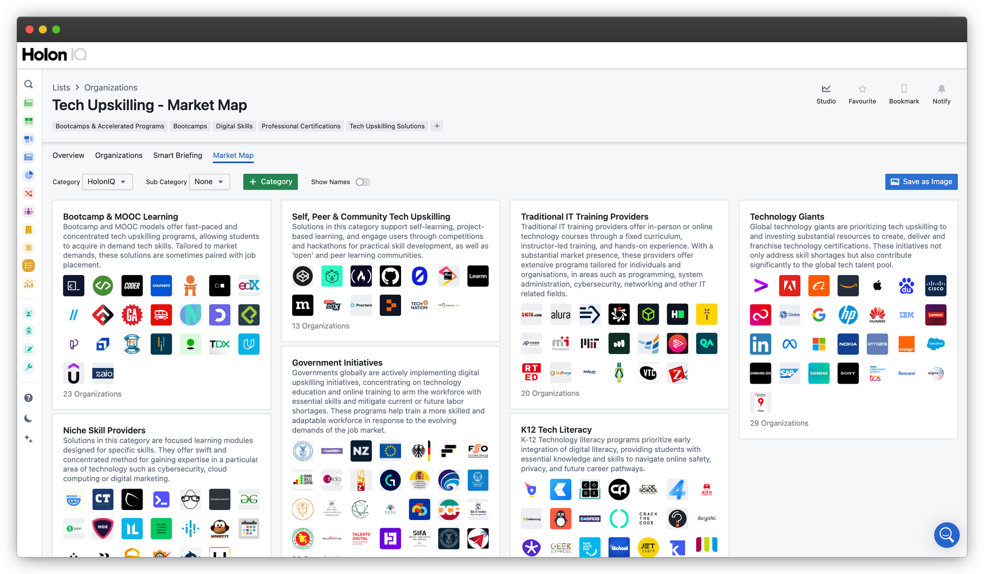 As employers and institutions worldwide focus on closing the technology skills gap, HolonIQ’s research team has compiled a comprehensive list of organizations in tech upskilling to help map the market. If you’re a customer, explore the list on the platform or reach out to us for a demo.