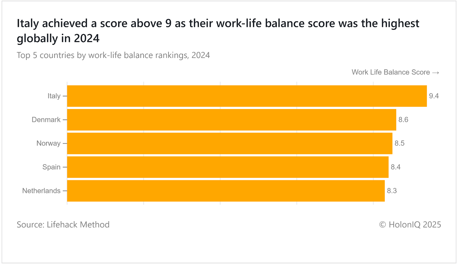 💼 Workforce. Italy led work-life balance scores globally in 2024
