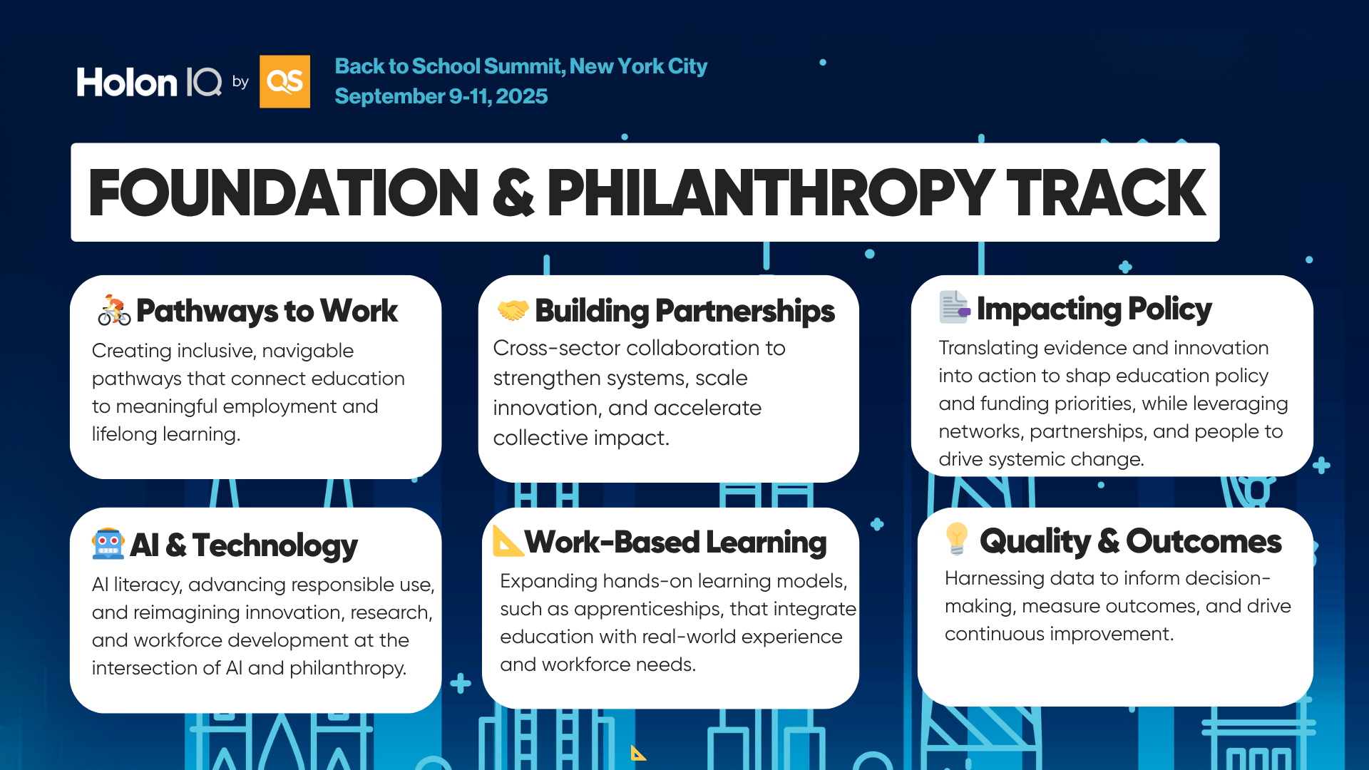Spotlight: The Foundation & Philanthropy Track How are funders shaping the future of learning and work? Join leaders from philanthropy, research, and education as they explore bold investments in equity, innovation, and technology. This tracks brings together top voices taking bold risks and driving systemic change—funding new models, scaling breakthrough solutions, and expanding opportunity at the intersection of education, workforce, and technology.