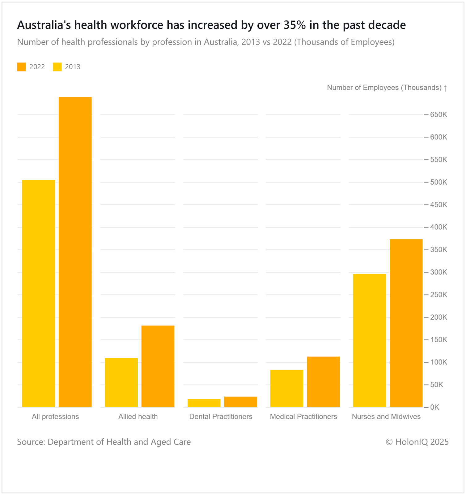 ⚕️ Healthcare. Australia's health workforce has increased by >35%