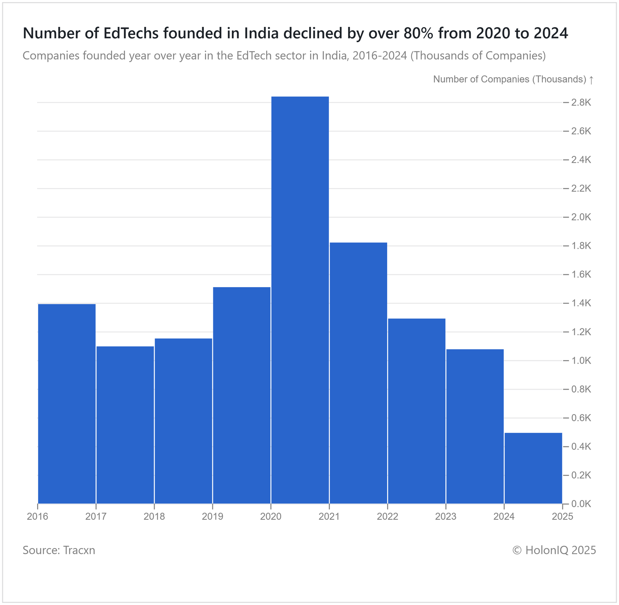 🏫 K12 Education. Number of Indian EdTechs declined by >80%