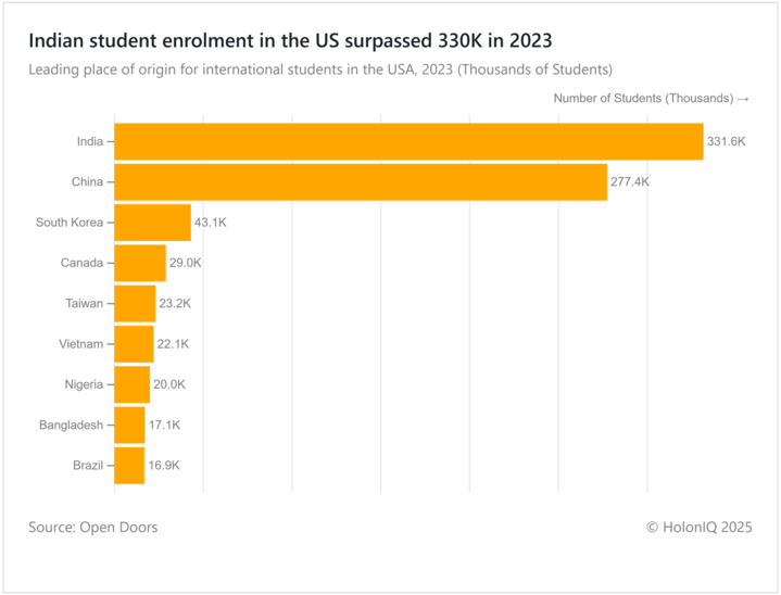 ✈️ Flows. Indian student enrollment in the US surpassed 330K