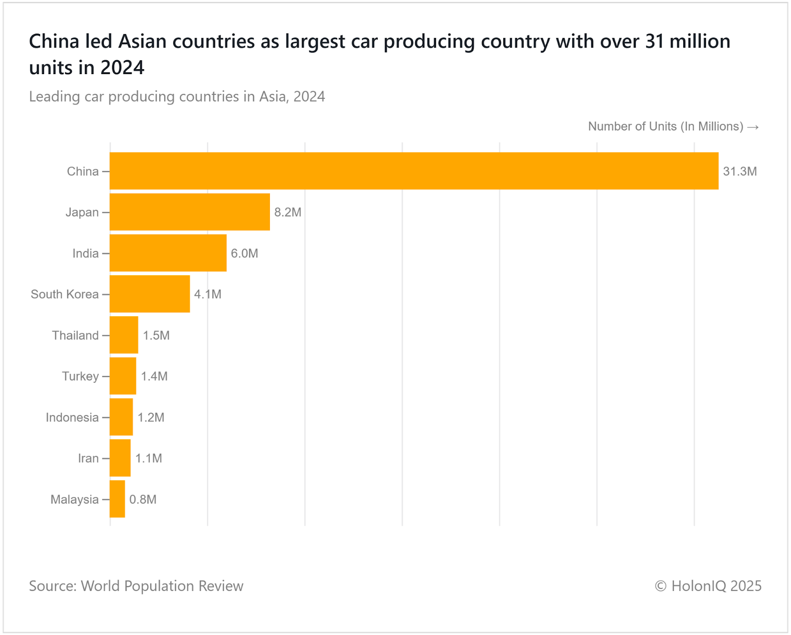 🏭 Advanced Manufacturing. China led in car manufacturing in Asia