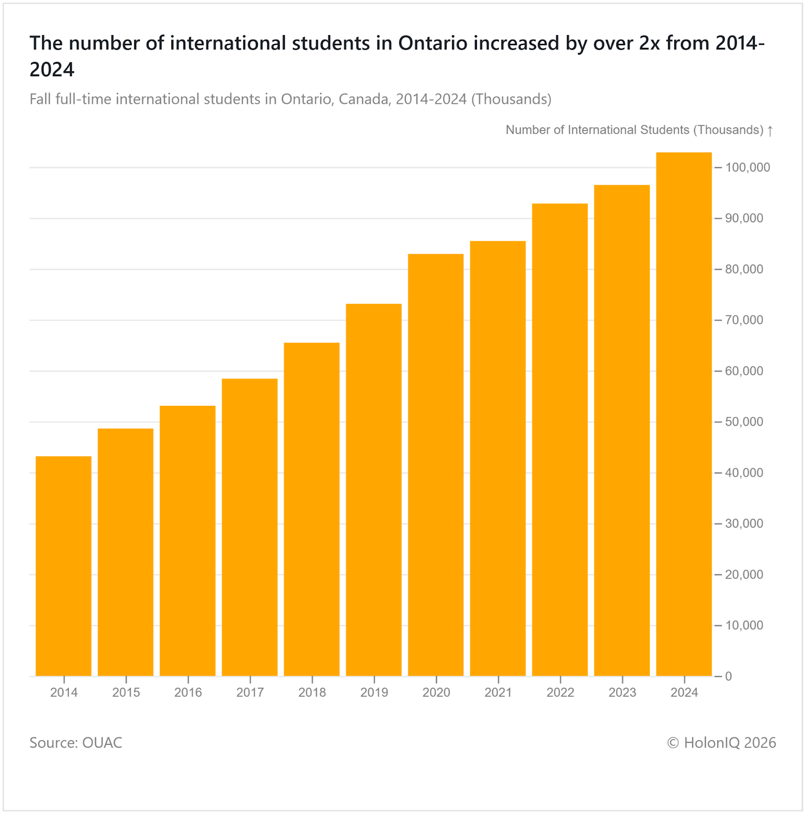 🎓 Higher Education. International students in Ontario increased by over twofold