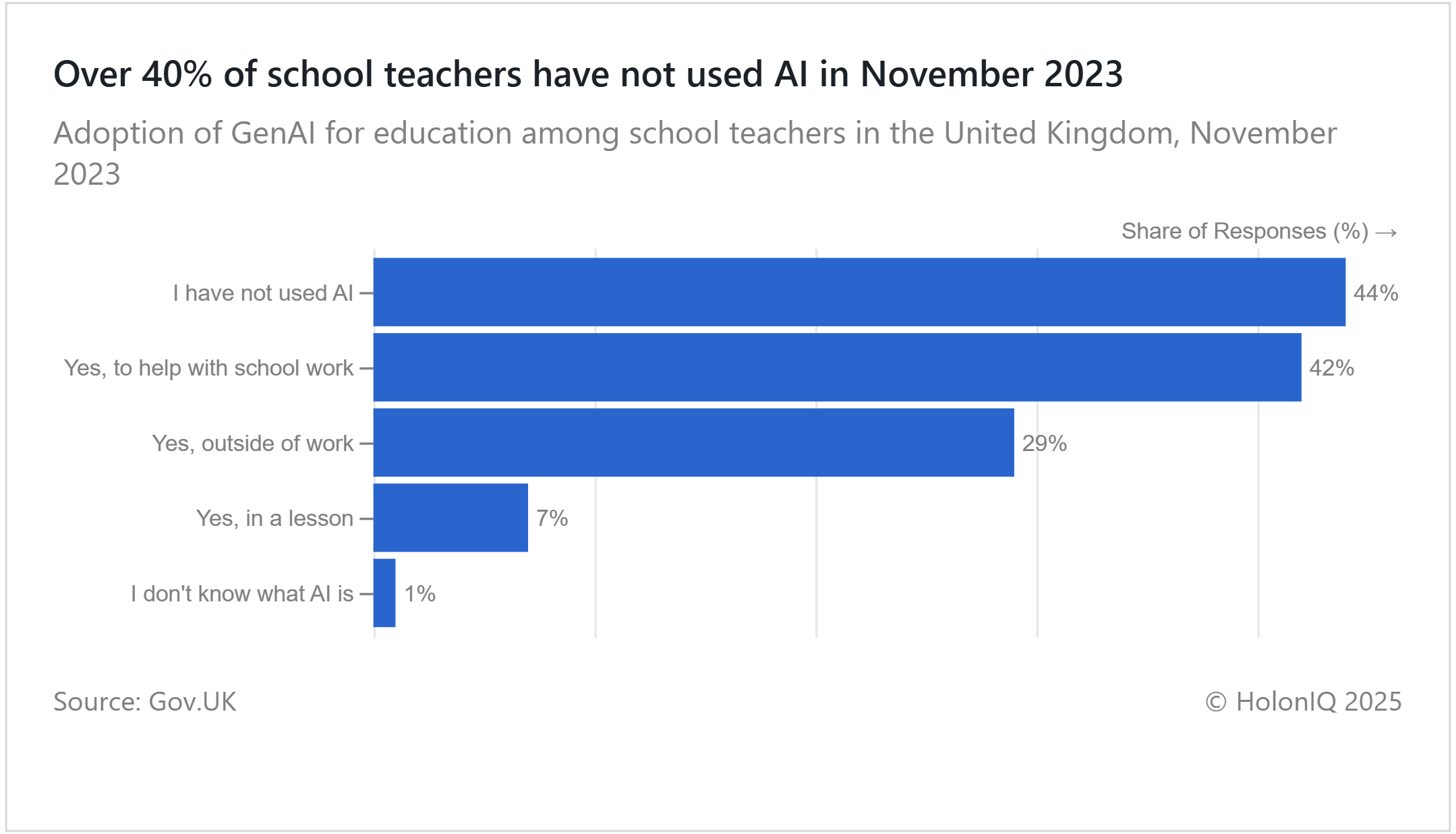 🎓 Higher Education. >40% of school teachers haven’t used AI