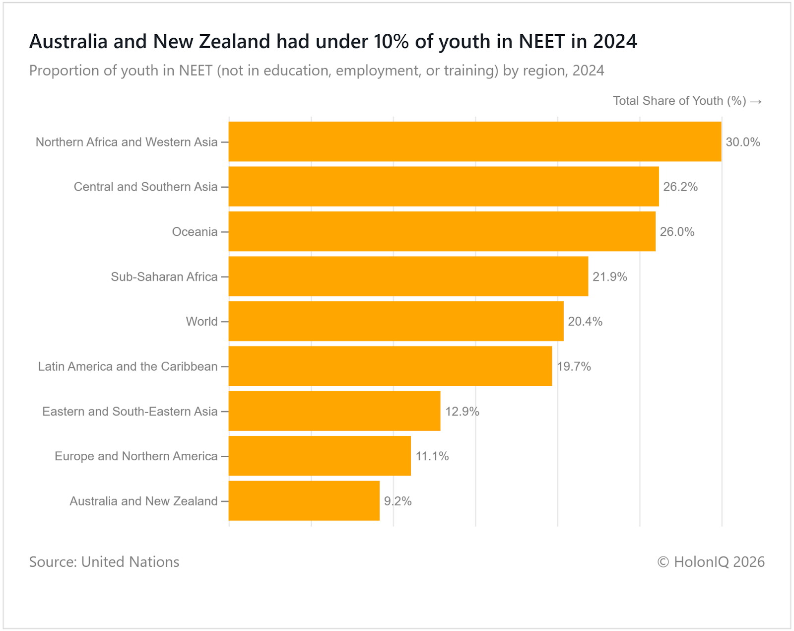 💼 Workforce. Australia and New Zealand least affected by NEET