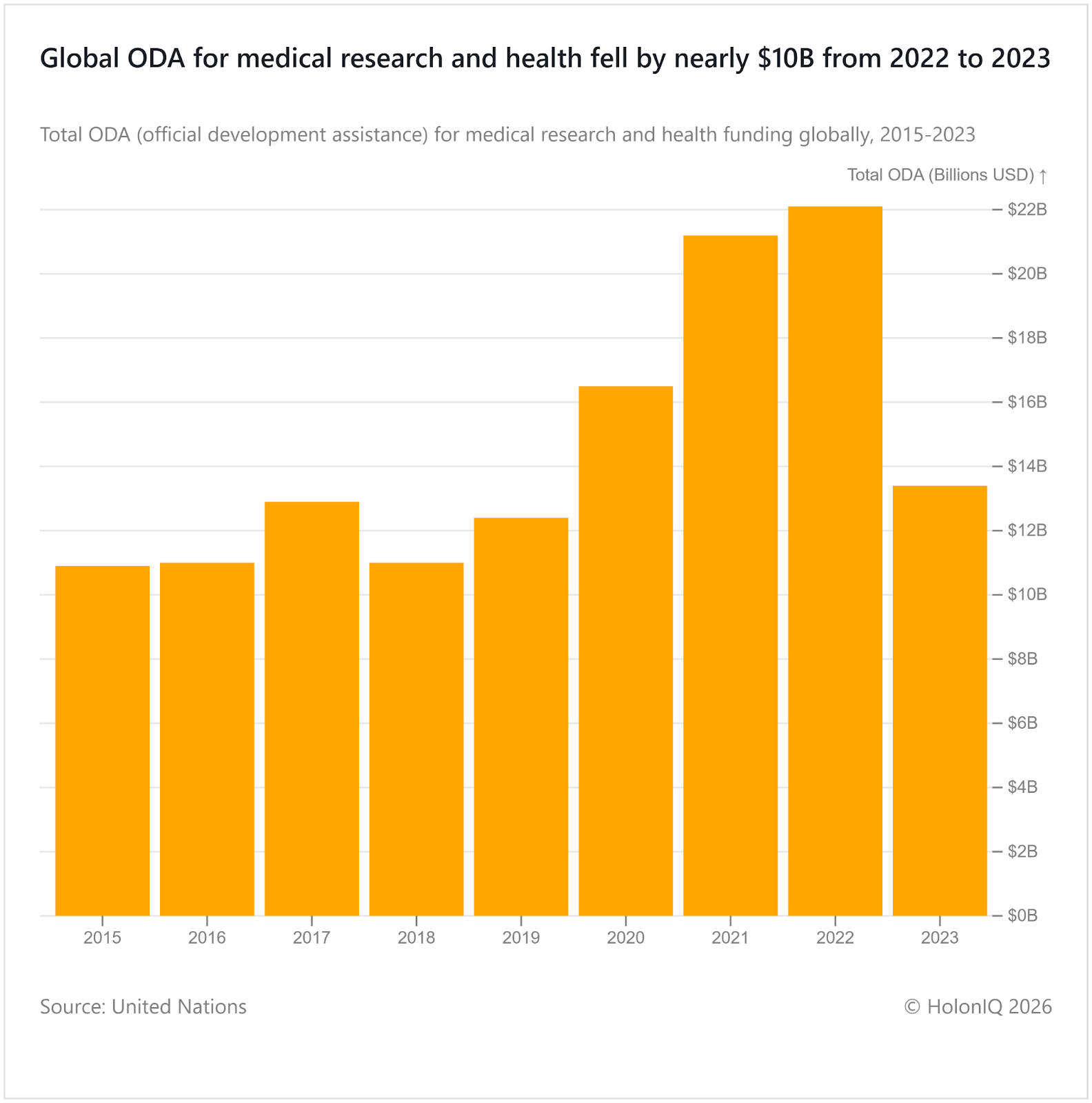 Global health official development assistance (ODA) fell to $13.4B in 2023, returning to pre-pandemic levels. This confirms a decade-long stagnation outside the COVID surge. This plateau persists despite worsening global health workforce shortages and rising disease burdens. The USA’s recent departure from the World Health Organisation may affect such funding. Sustained ODA remains essential to support universal health coverage goals, especially in developing regions.