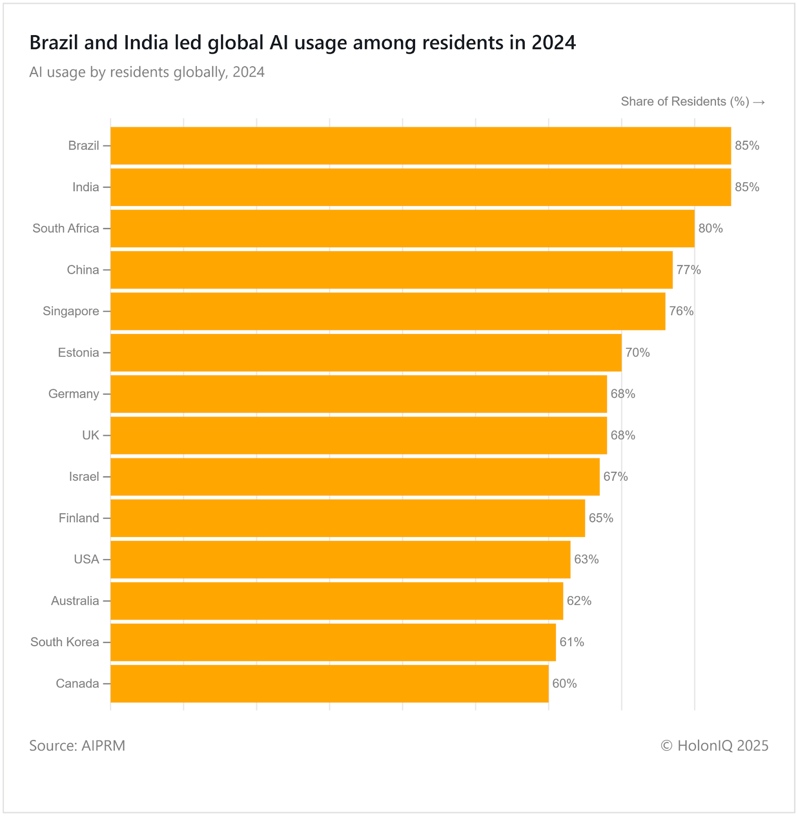 🤖 Artificial Intelligence. Brazil and India led in AI usage by residents