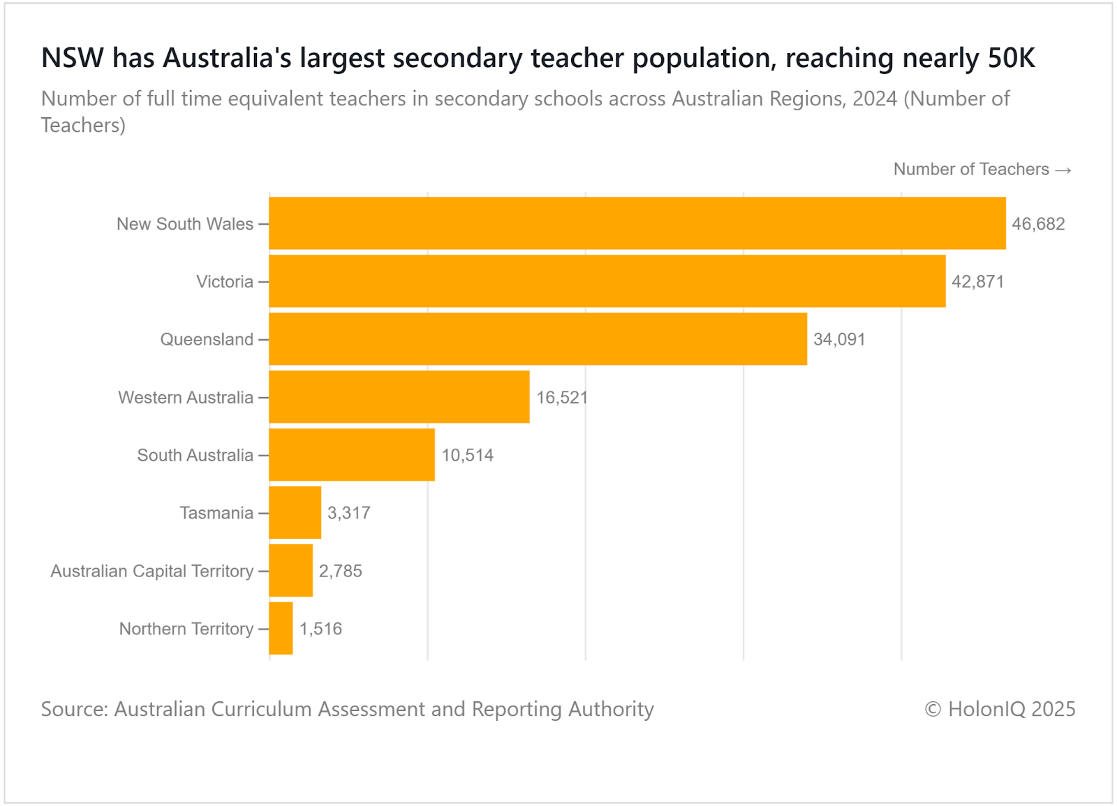 🏫 K-12 Education. NSW leads in Australia with nearly 50k secondary teachers