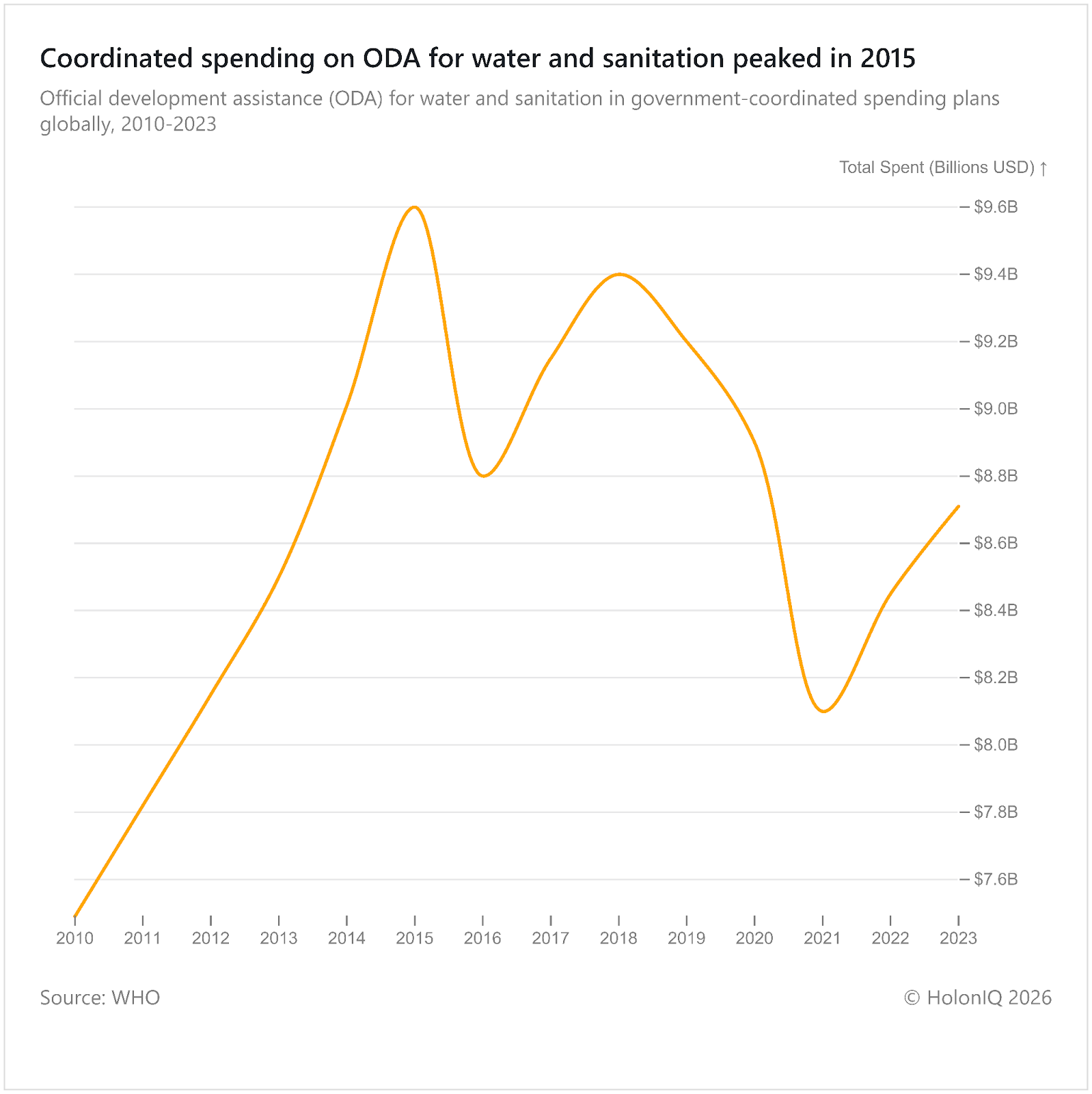 ⚕️ Coordinated water ODA peaked in 2015 with the SDG launch