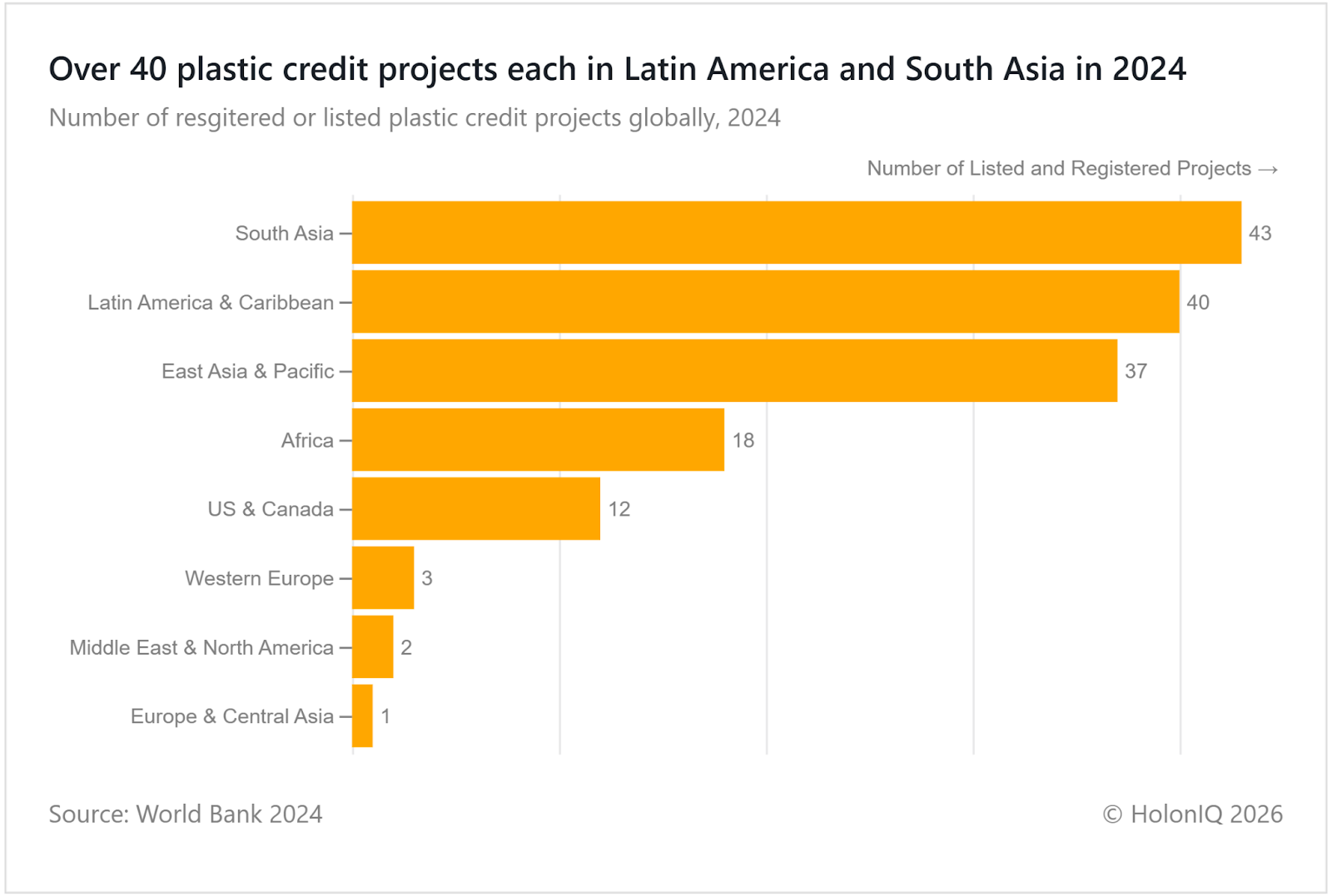 Emerging economies led in plastic credit adoption, with increased project adoption helping bridge a USD 1.2T circular economy financing gap aimed to be achieved by 2040. These projects drive infrastructure in regions lacking municipal services and increase informal worker incomes. PLEASE Project and Clean Bhutan are notable projects in South Asia. Developed nations lag due to mature EPR frameworks and strict anti-greenwashing regulations. However, environmental organisations push for more deep-rooted solutions that would reduce the overall plastic production, to make these efforts more effective.