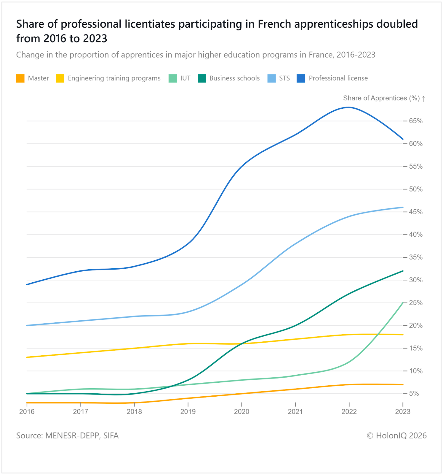💼 Workforce. Increased apprenticeships signalled French workforce development