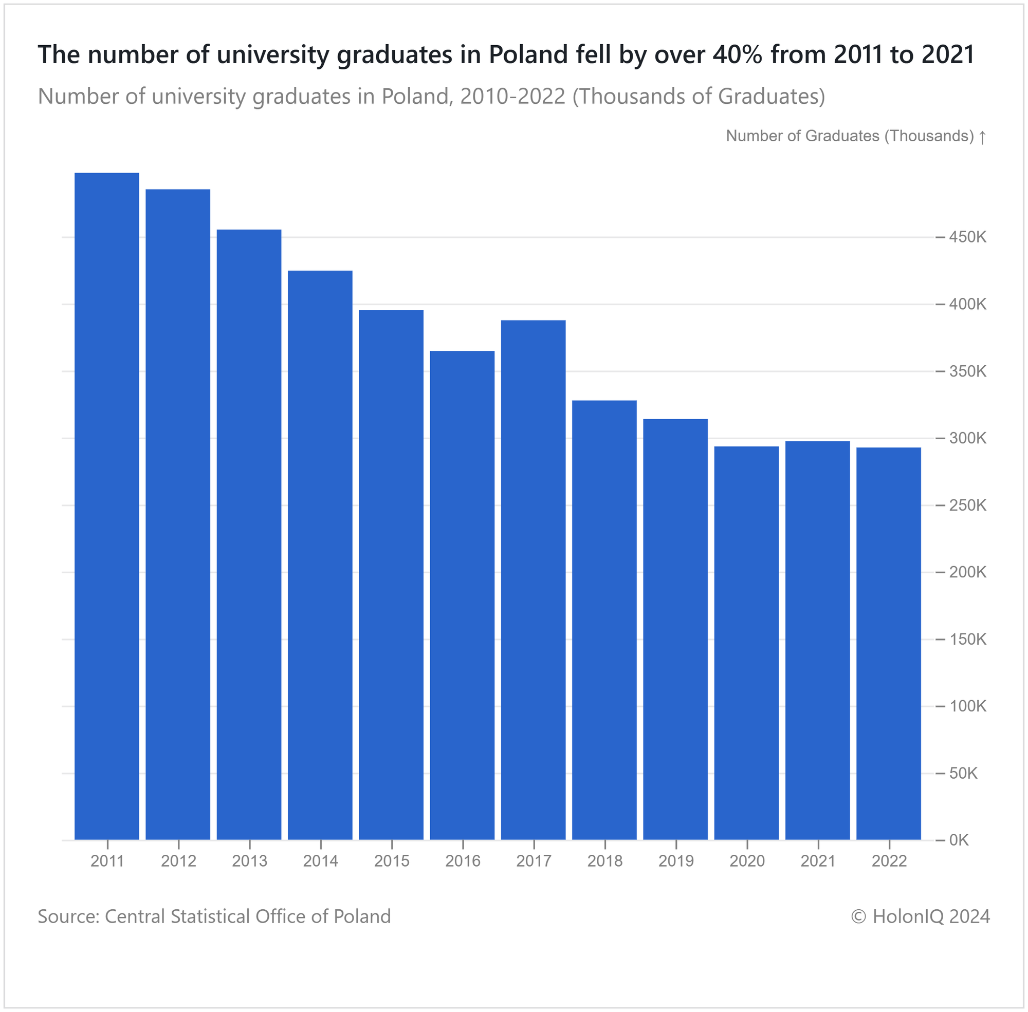 🎓 >40% Fall in Polish Graduates From 2011 to 2021