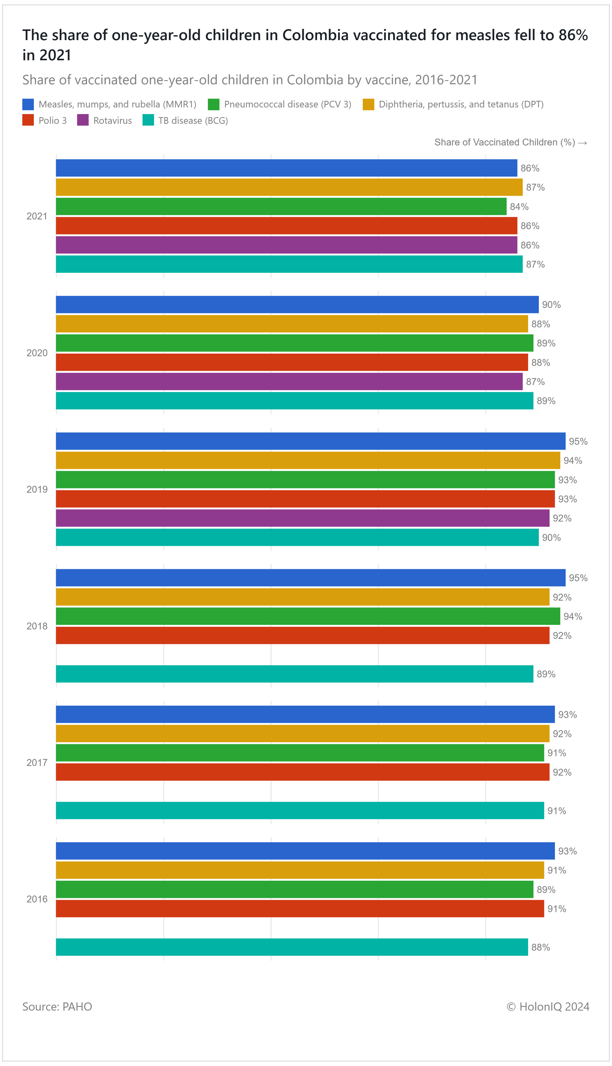 🧑⚕️ Healthcare. >80% of children in Colombia vaccinated for measles in 2021