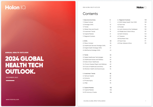 HolonIQ's annual analysis of the evolving Health Tech landscape offers over 190 pages of in-depth insights on market data, investments, strategic shifts, and trends in healthcare services, pharmaceuticals, biotechnology, and medical hardware. Download the extract or purchase the full report.