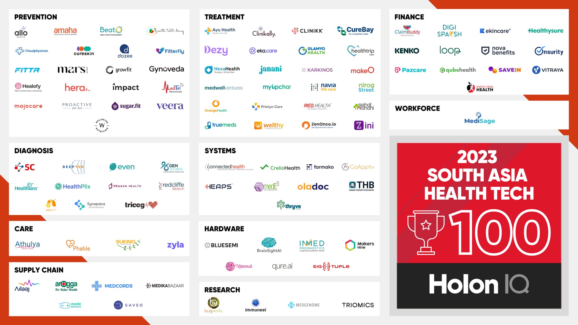 The 2023 South Asia Health Tech 100 is HolonIQ’s annual list of the region's most promising startups in digital health, biotech, drug discovery, and analytics.