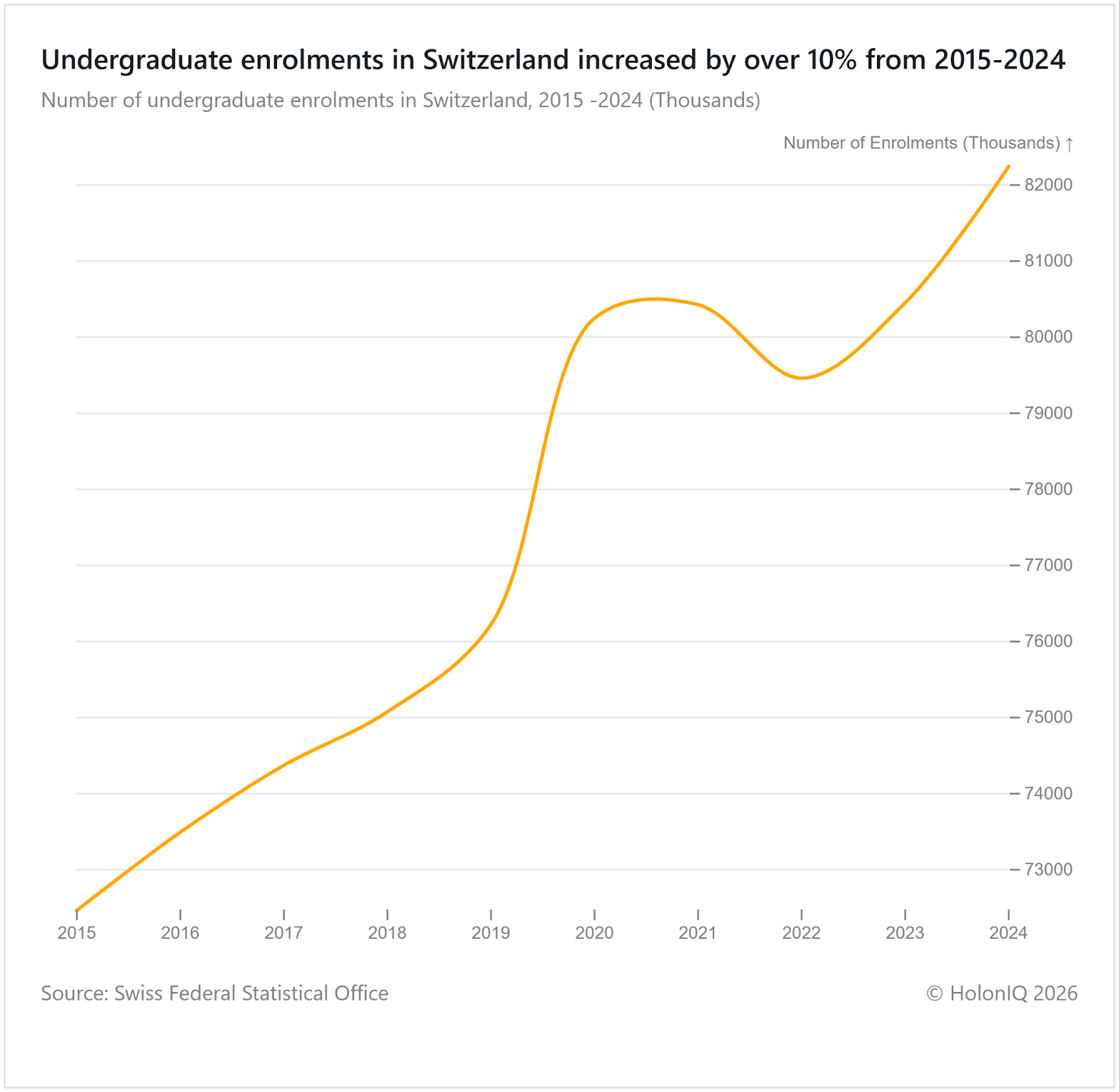 ๐ Higher Education. Switzerland's undergraduate enrolments increased steadily