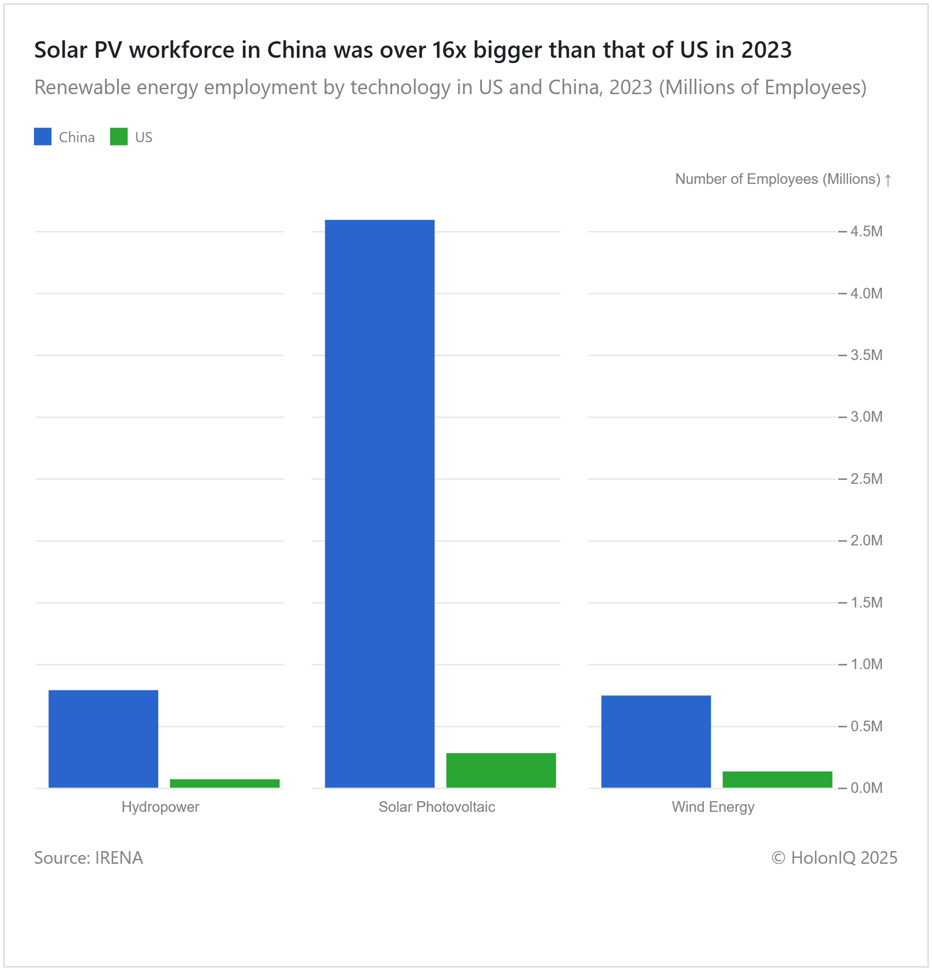 🍃 China’s Solar PV Workforce Was 16× Larger Than the US