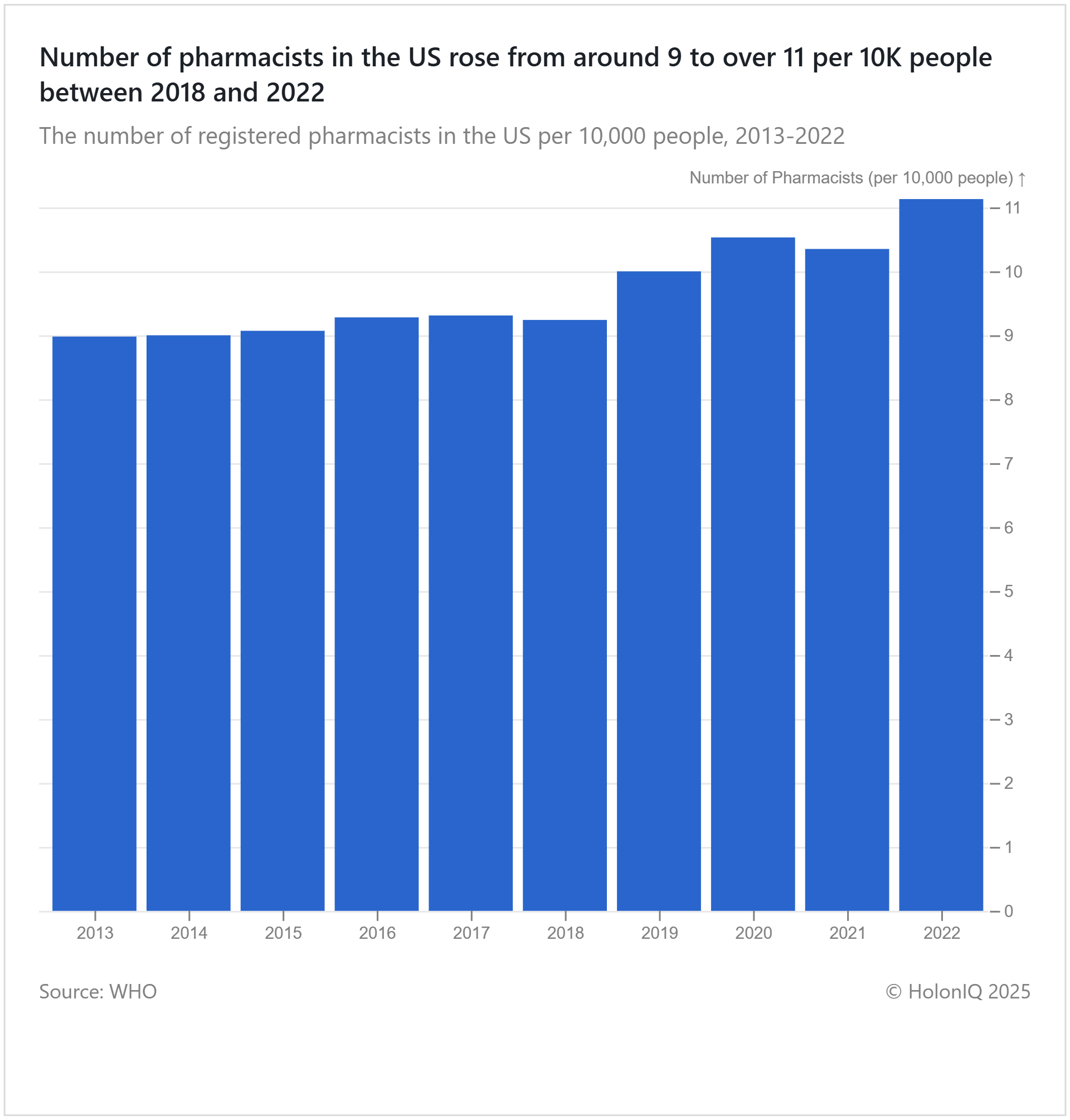 ⚕️ Healthcare. >10 registered pharmacists served every 10K people in the US