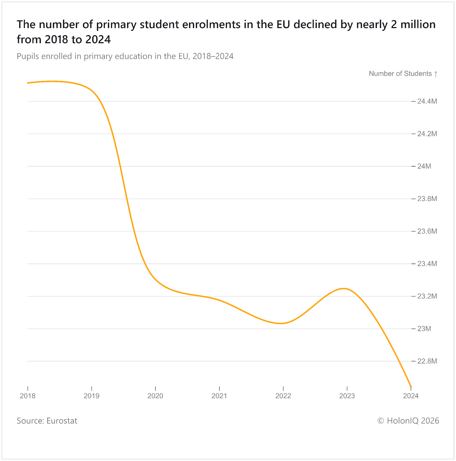 🏫 K-12 Education. The EU’s primary student enrolment declined by 2024