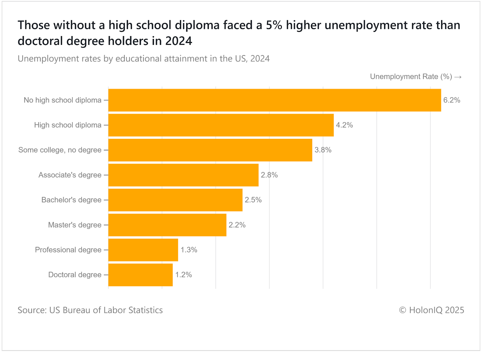🎓 Unemployment Was 5% Higher For Those Without a Diploma than for PhDs in 2024